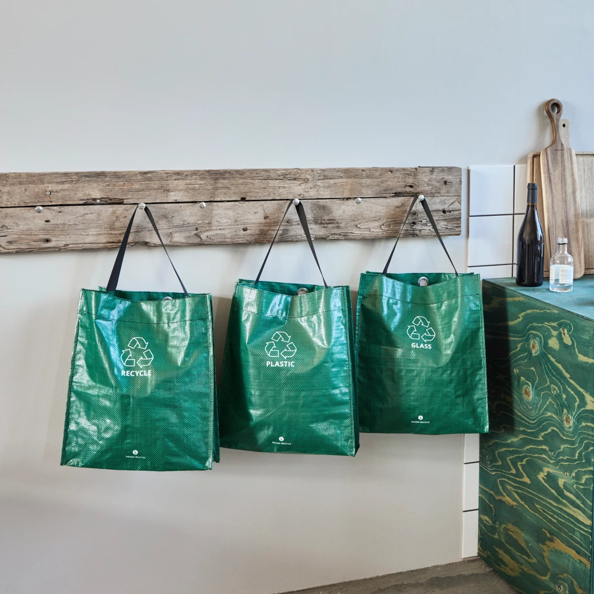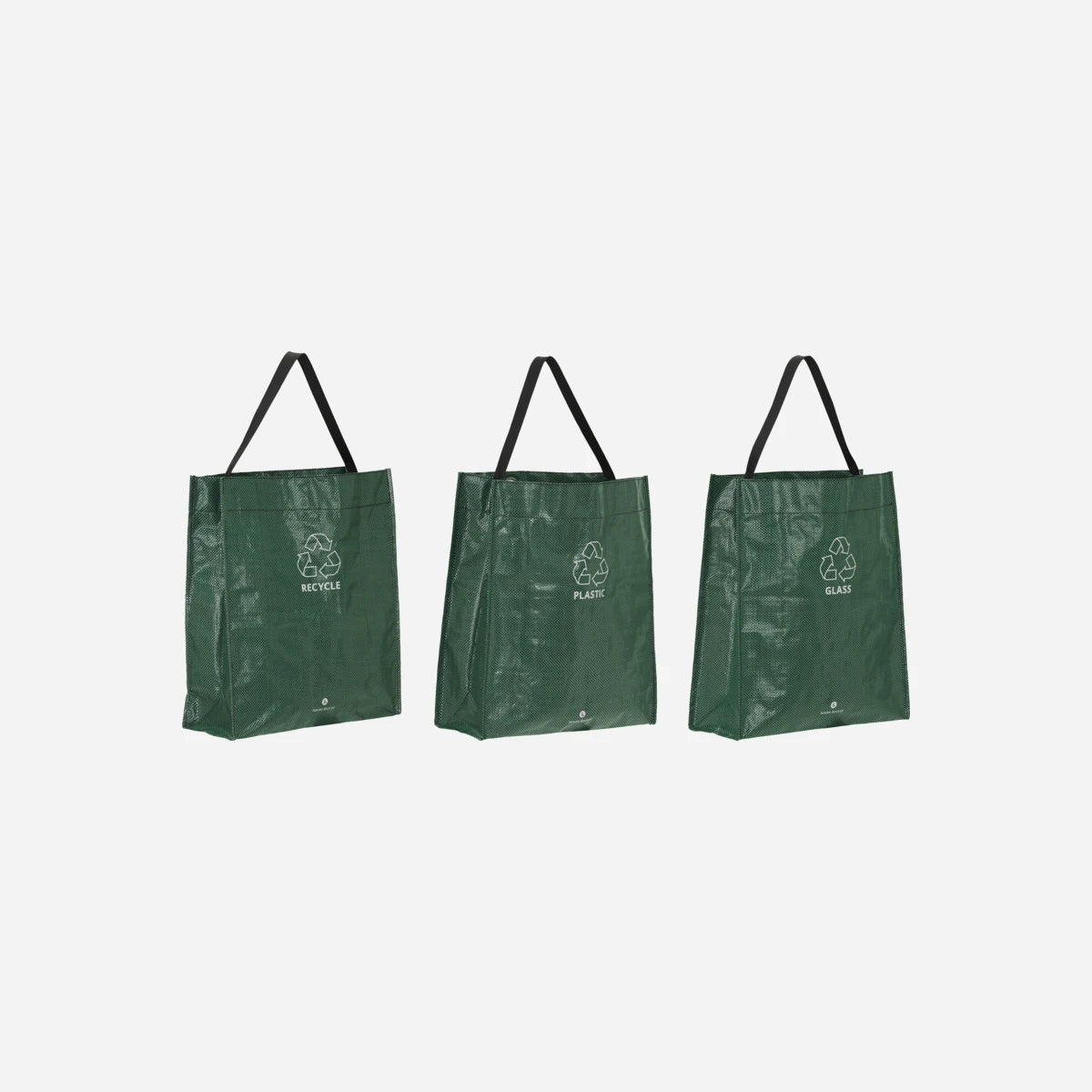 Mit dem HDRecycle-Set wird die Mülltrennung zu einem leichten und stilvollen Teil deines Alltags. Es besteht aus drei Taschen in einem schönen Grünton, deren praktisches Design das Sortieren zu Hause einfach und effektiv macht.