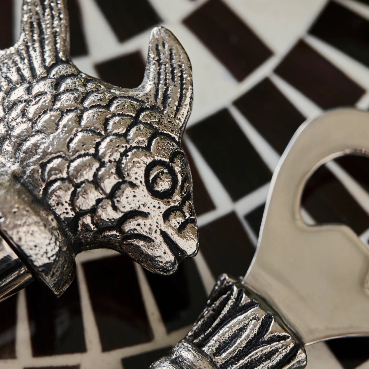 Verleihen Sie Ihrer Küche oder Hausbar mit diesem charmanten Set in antiker Silberoptik einen Hauch von Eleganz. Der Flaschenverschluss mit einem Fischmotiv und der Flaschenöffner mit einem Hummerdesign sind nicht nur praktisch, sondern auch dekorativ. Ein ideales Geschenk für Gastgeber, das Freude und ein nautisches Thema ins Zuhause bringt.- Antike Silberoptik Set.- Dekoratives Fisch- und Hummermotiv.- Ideal für Küche und Bar.- Perfekt als Gastgebergeschenk.Bringen Sie maritimen Charme in Ihr Zuhause mit diesem einzigartigen Set.