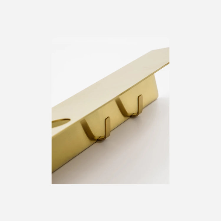 Regal mit Flaschenhalterung und Hakenleiste, Mattes Messing-Finish