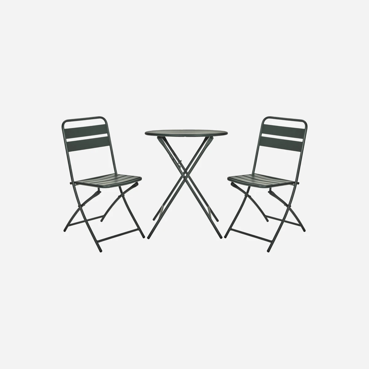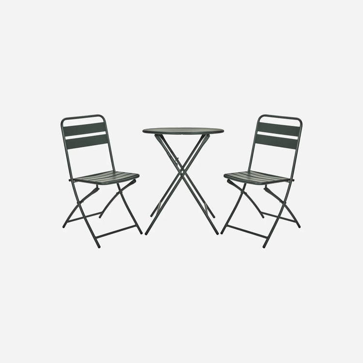 Verleihen Sie Ihrem Außenbereich mit diesem stilvollen Café-Set aus dunkelgrünem Eisen eine zeitlose Note. Der Tisch und die beiden Stühle sind faltbar und somit einfach zu verstauen. Perfekt für Balkon, Terrasse oder kleine Innenräume geeignet, lädt dieses Set dazu ein, mit Kissen und Teelichthaltern eine gemütliche Atmosphäre zu schaffen.- Mattgrüne Pulverbeschichtung- Set: 1 Tisch, 2 Stühle- Faltbar für einfache Lagerung- Vielseitig für drinnen und draußenBereichern Sie Ihren Wohnstil mit diesem eleganten Set.
