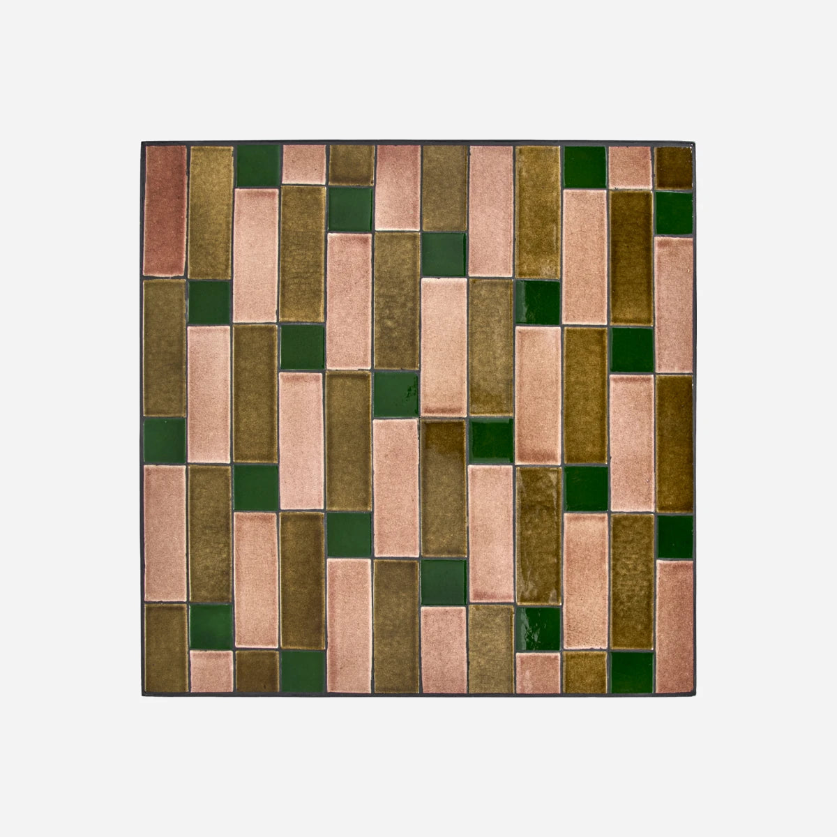 Verleihen Sie Ihrem Zuhause mit diesem handgefertigten Tisch ein modernes Flair. Die Tischplatte aus Keramikfliesen beeindruckt mit einer einzigartigen Kombination aus glänzenden rosa, braunen und dunkelgrünen Fliesen, die in einem rechteckigen Mosaikmuster angeordnet sind. Der schwarze Eisenrahmen bietet eine robuste Basis und verleiht dem Tisch einen industriellen Touch, der die elegante Oberfläche ergänzt und kontrastiert. Dieses auffällige Design ist ein Muss dieser Saison und passt perfekt zu verschiedenen Einrichtungsstilen sowie schwarzen oder grünen Stühlen.- Handgefertigtes Design- Einzigartige Farbkombination- Robuster schwarzer Eisenrahmen- Vielseitige EinsetzbarkeitMachen Sie dieses bezaubernde Stück zum Mittelpunkt Ihres Wohnzimmers.