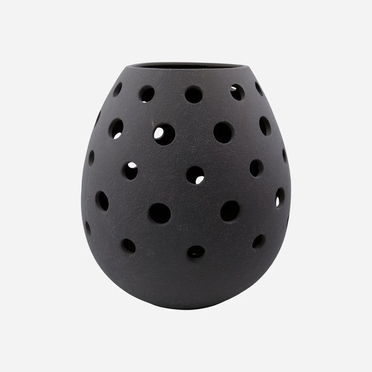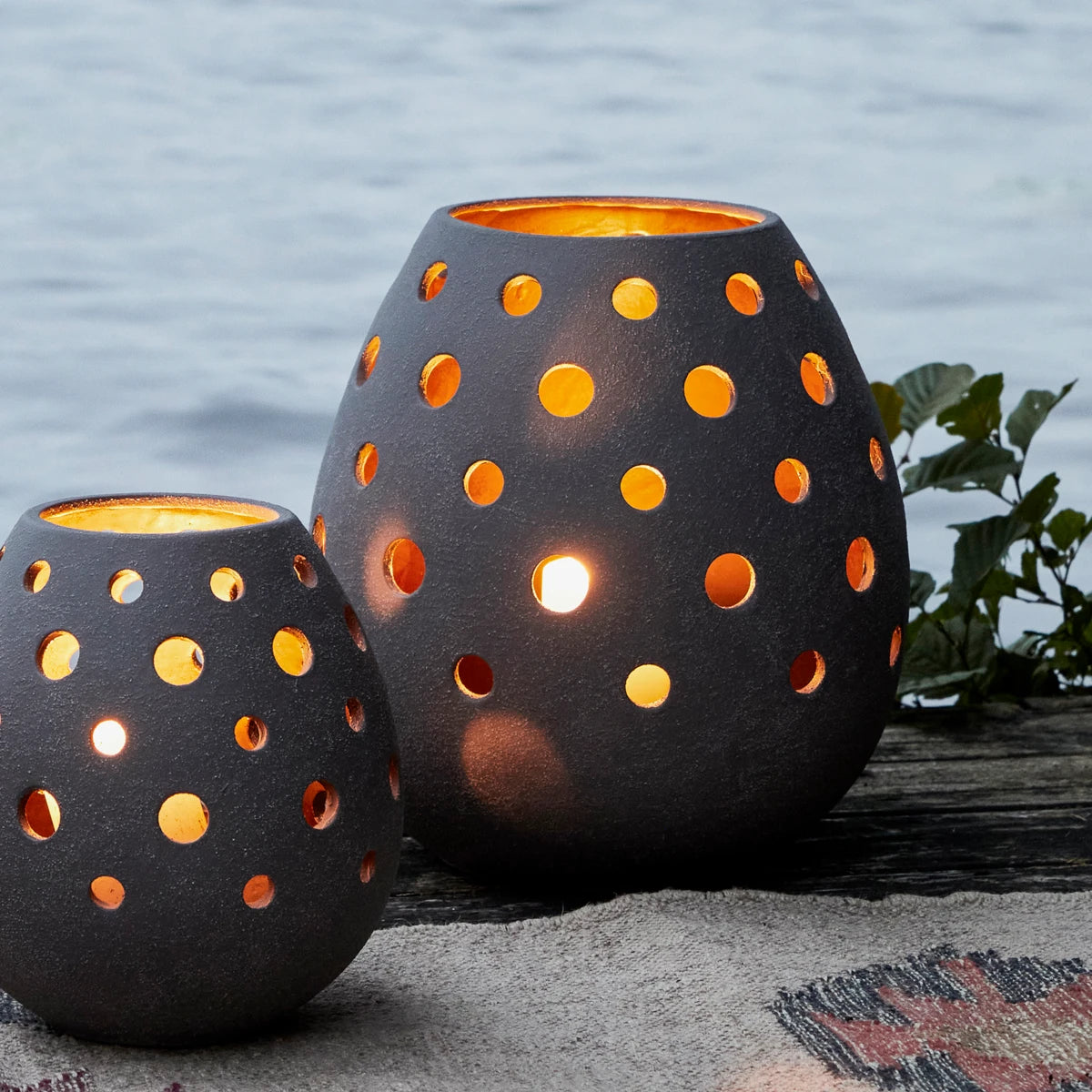 Create a cosy and welcoming atmosphere with this candle holder from House Doctor. The lightness of the holes and the raw look of the clay perfectly complement each other and give off a relaxed and unpretentious vibe. Add a pillar candle or a string of lights and place the candle holder wherever you want to add to the atmosphere. Its size makes it ideal for the floor as well as tables and shelves.
