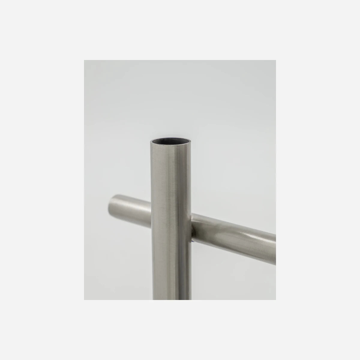 Verleihen Sie Ihrem Zuhause einen Hauch von Eleganz mit diesem handgefertigten Kerzenhalter aus Eisen in antikem Silber. Einzigartig und modern, fügt er sich nahtlos in jede Einrichtung ein. Dekorieren Sie ihn mit Tannengrün und Ornamenten für einen