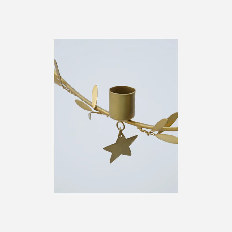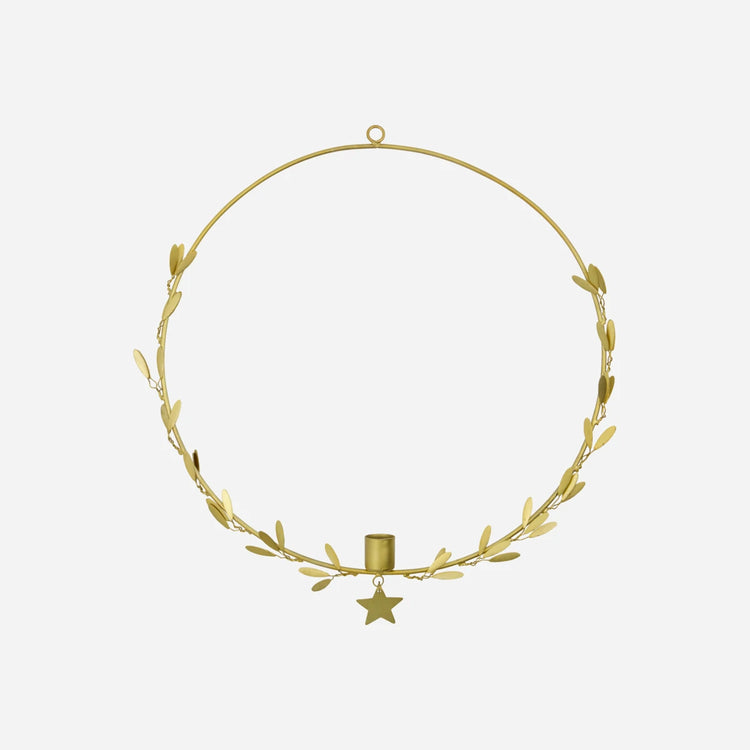 Kein Platz mehr für Kerzen auf dem Tisch? Mit diesem Kerzenhalter von House Doctor kannst du zu Weihnachten einfach das Licht von der Decke hängen lassen. Der hängende Kerzenhalter mit Messingoptik, Blättern und einem Stern lässt sich prima oben mit einem Band schmücken. Danach einfach eine Kerze hinzufügen und fertig ist der elegante Blickfang. Ideal für Ecken in der Wohnung, die keinen Platz für normale Kerzenhalter haben. Für einen persönlichen Ausdruck, den Ring mit leichtem Schmuck oder ein paar Zweigchen dekorieren.