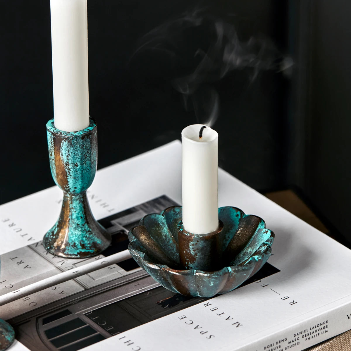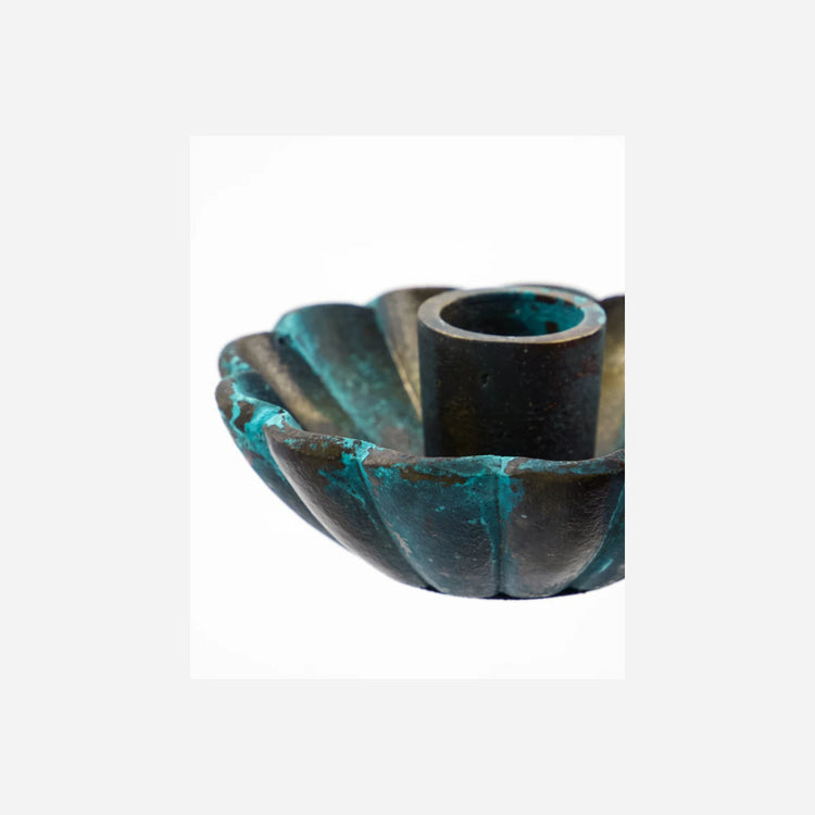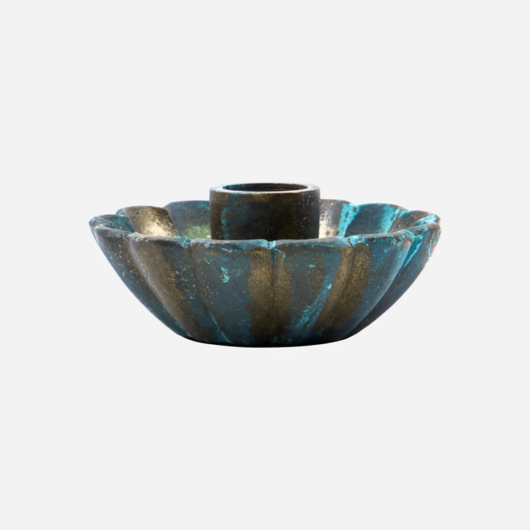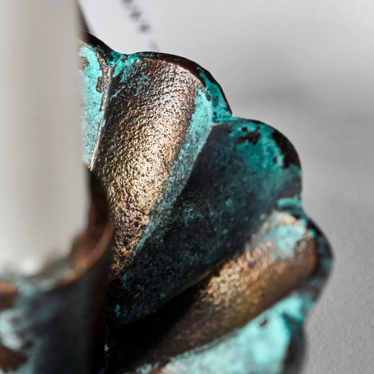 Dieser elegante Kerzenhalter aus Aluminiumguss mit antik-grüner Oberfläche verleiht jedem Raum einen femininen Touch. Die kleine Größe und die weichen Formen machen ihn zu einem charmanten Element in Ihrer Einrichtung. Er eignet sich perfekt für Standardkerzen und sorgt für eine wunderschöne Beleuchtung.- Handgefertigt, einzigartige Oberfläche- Antikes grünes Aluminium- Passend für Standardkerzen- Klein und charmantVerleihen Sie Ihrem Zuhause einen Hauch von Eleganz mit diesem exquisiten Kerzenhalter.