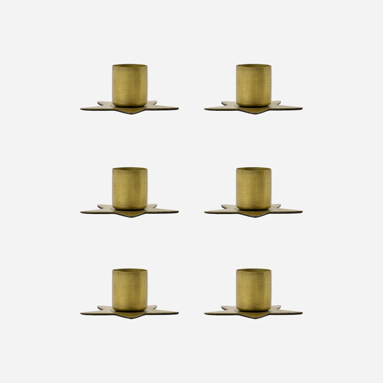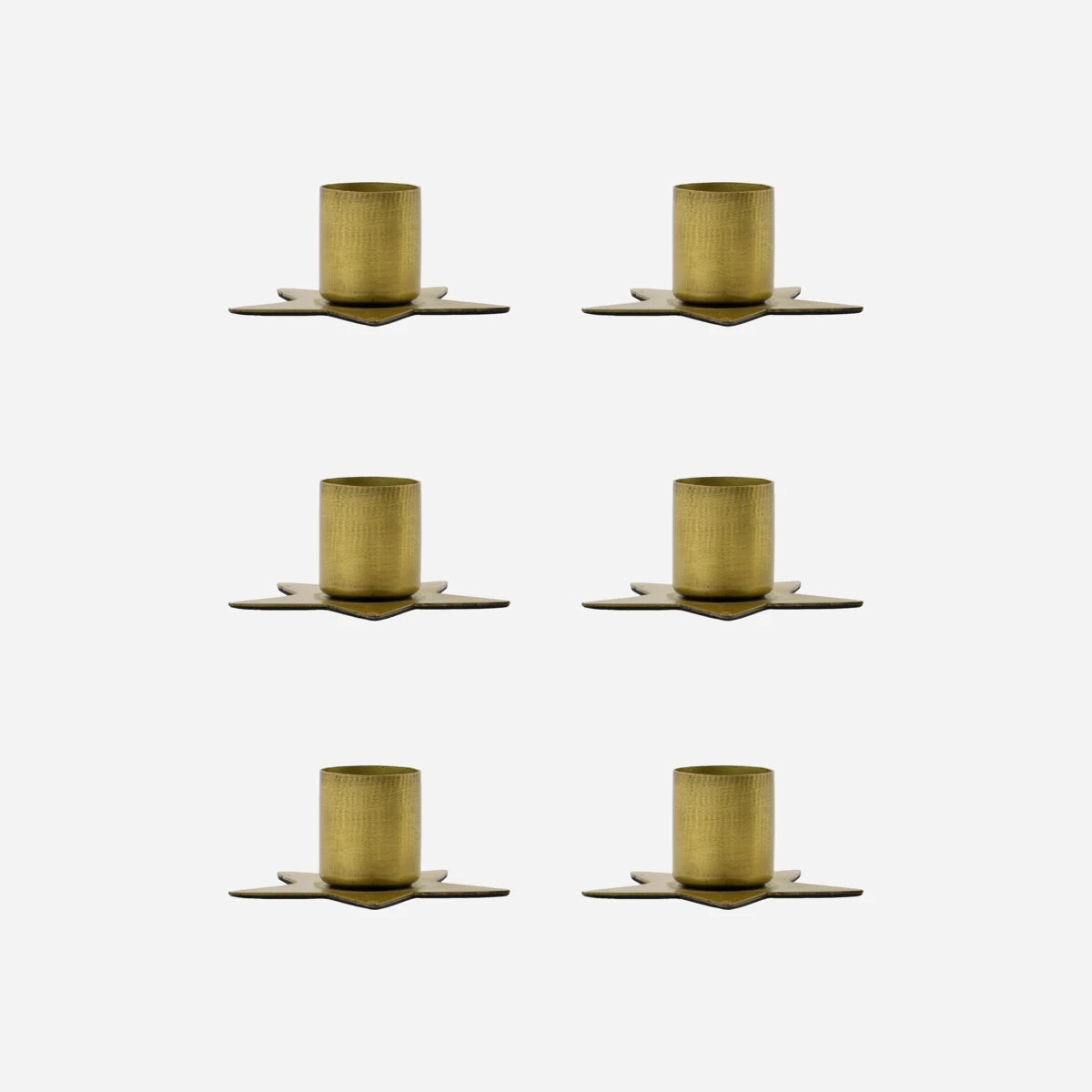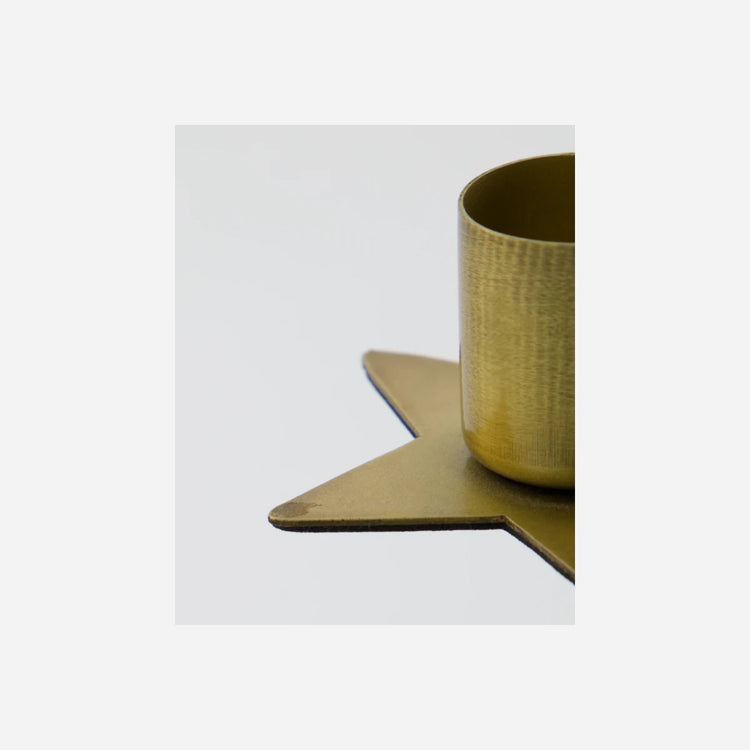 Verwandeln Sie Ihr Zuhause in ein festliches Paradies mit diesem handgefertigten Kerzenhalter mit antikem Messing-Finish. Die sternförmige Basis verleiht Stabilität und Charme, während der zylindrische Halter für sicheren Halt sorgt. Perfekt für eine gemütliche Weihnachtsatmosphäre.