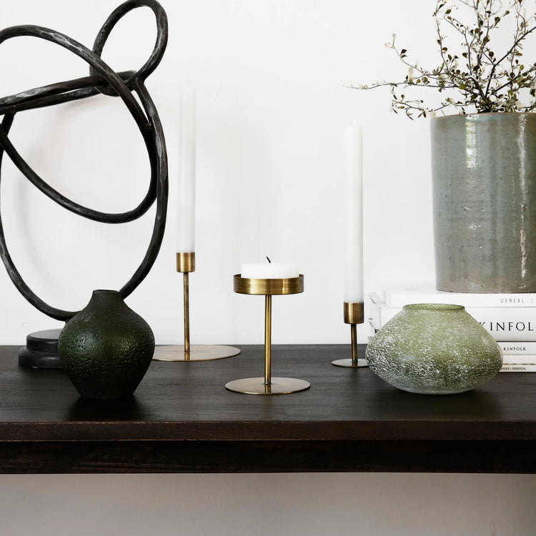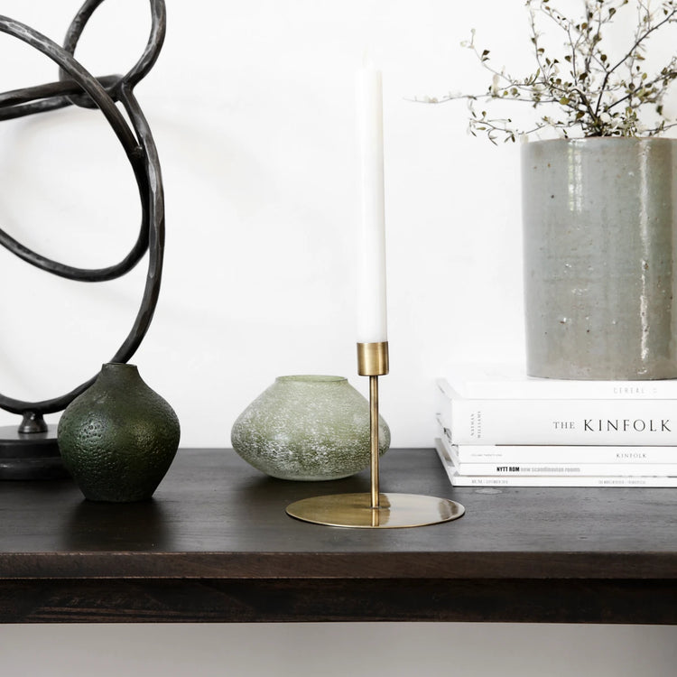 Kerzen bringen eine gemütliche und warme Atmosphäre in Ihre Räume. Mit Anit von House Doctor erhalten Sie einen schönen Kerzenständer aus Eisen für Teelichter oder Kerzen. Die antike Messing-Farbgebung verleiht dem Kerzenständer in Kombination mit der Eisenstruktur einen einzigartigen und rauen Look. Das Design ist schlicht und hat eine runde Formsprache. Verwenden Sie Anit als Tischdekoration, wenn Sie Gäste empfangen, oder setzen Sie ihn mit weiteren Kerzenständern in unterschiedlichen Materialien in Szene, um einen persönlichen Look zu gestalten. Geeignet für Kerzen mit einem Durchmesser von 2 cm (201210005).