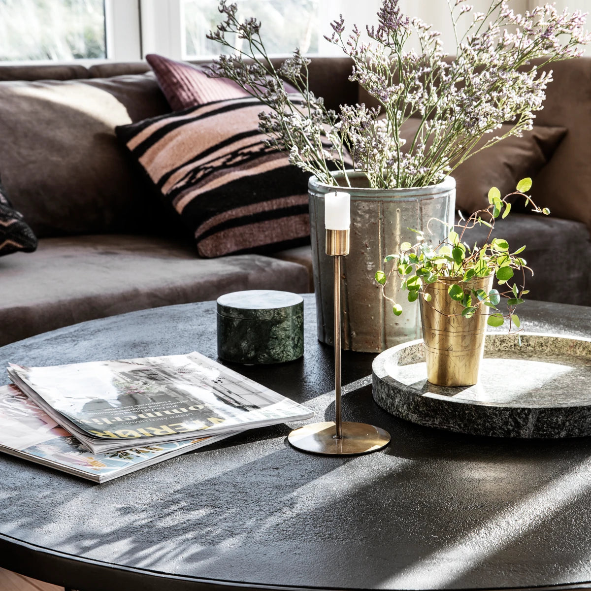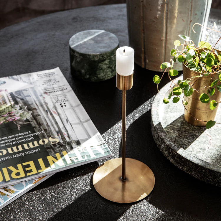 Nichts ist so gemütlich wie Kerzenschein an einem kalten und regnerischen Tag. Anit von House Doctor ist ein schöner Kerzenständer aus Eisen mit rustikalem Look. Der Kerzenständer hat ein hübsches antikes Messing-Finish, das Persönlichkeit in Ihre Einrichtung bringt. Setzen Sie den Kerzenständer als dekorativen Blickfang auf dem Esstisch, auf dem Couchtisch oder auf einer Fensterbank in Szene. Geeignet für Kerzen mit einem Durchmesser von 2 cm (201210005).