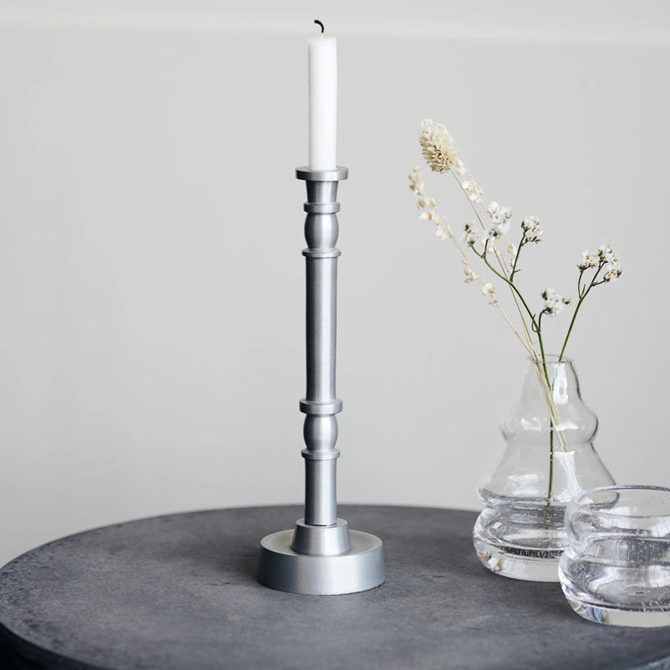 Dieser Kerzenständer von House Doctor ist der Inbegriff von subtiler Eleganz. Jersey ist schlank und modern, präsentiert sich aber dennoch mit Details, die an das klassische Design eines Kerzenleuchters erinnern. Dieses Modell ist die kleinste Version des Kerzenständers, der in drei Größen erhältlich ist. Stell ihn alleine auf oder setze auf den Wiederholungseffekt und kombiniere alle drei Größen auf dem Fensterbrett oder auf dem Esstisch. Mit Kerzen ausgestattet werden die hohen Kerzenständer ein eindrucksvolles Arrangement bilden. Eine Filzscheibe auf der Unterseite schützt deine Oberflächen vor Kratzern. Für Kerzen mit einem Durchmesser von 1,2 cm geeignet (201210002).