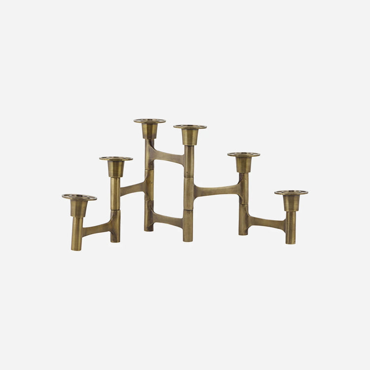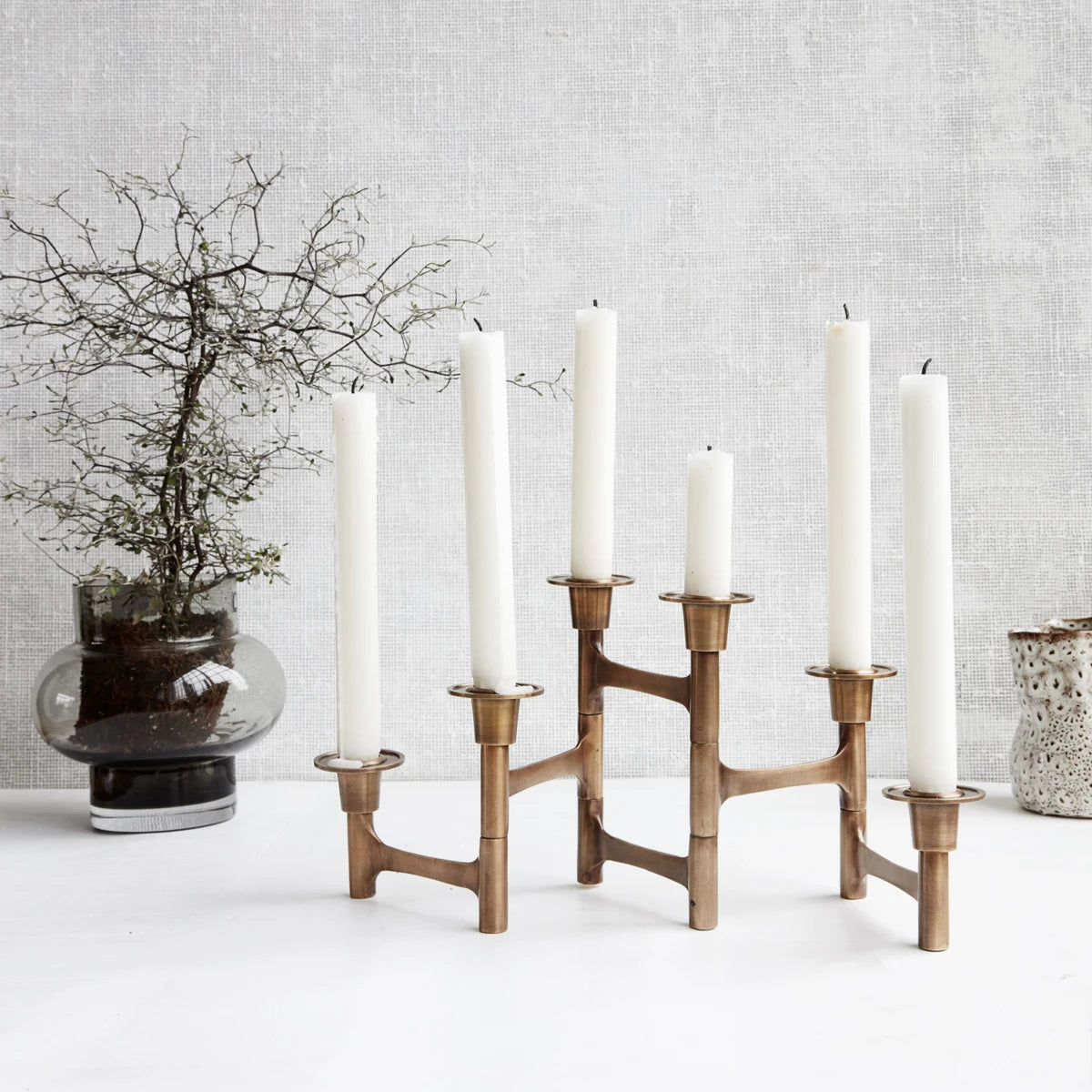 Schaffen Sie mit einem hübschen Kerzenständer eine gemütliche Atmosphäre und jede Menge Persönlichkeit in Ihrer Einrichtung. Move von House Doctor ist ein schöner Kerzenständer mit einem skulpturalen Look und Platz für sechs Kerzen. Der Kerzenständer ist aus Messing gefertigt, das ihm einen modernen und geradlinigen Touch verleiht. Nutzen Sie den Kerzenständer als dekoratives Designobjekt auf dem Esstisch oder im Wohnzimmer - sowohl mit als auch ohne Kerzen. Für Kerzen mit einem Durchmesser von 2 cm geeignet (201210005).