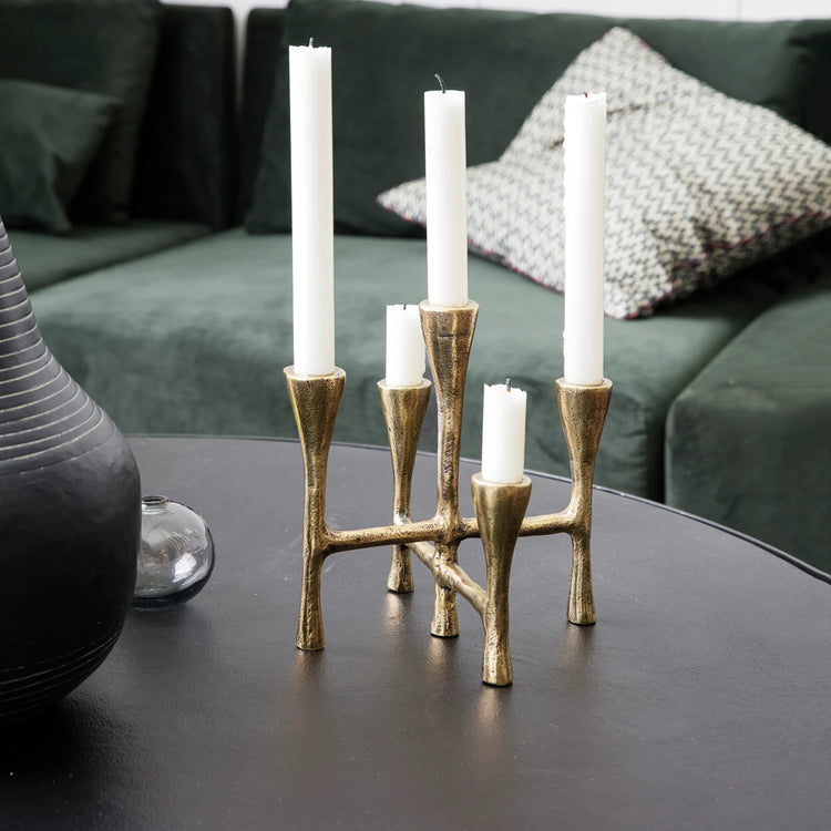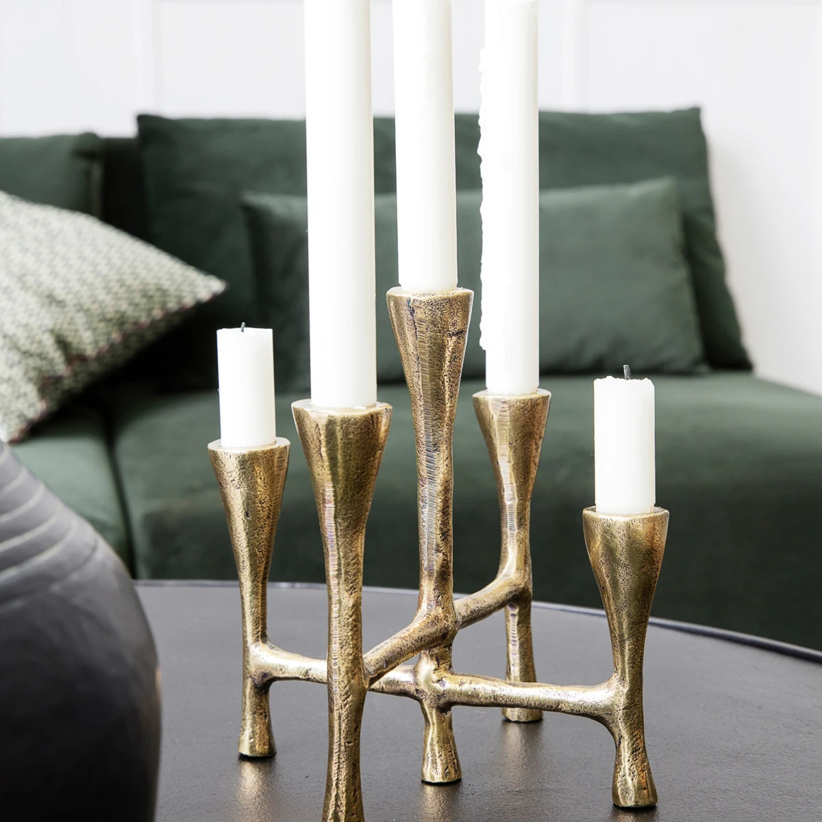 Kerzen sind gleichbedeutend mit Gemütlichkeit, vor allem abends. Mit diesem Kerzenständer von House Doctor können Sie ihr Heim erleuchten und die richtige Stimmung für einen gemütlichen, festlochen Abend mit Freunden schaffen. Der Kerzenständer trägt den Namen Tristy und ist aus Aluminium mit einem Messing-Finish gefertigt. Tristy hat ein rustikales, antikes Äußeres an sich, vor allem aufgrund der kupfernen Legierung. Der Kerzenständer ist ein skulpturales Element, das sich perfekt eignet, um ihr Zuhause zu verschönern. Platzieren Sie es auf einem kleinen Nebentisch und beobachten Sie, wie sich die Aufmerksamkeit darauf richten wird. Für Kerzen mit einem Durchmesser von 2 cm geeignet (201210005).