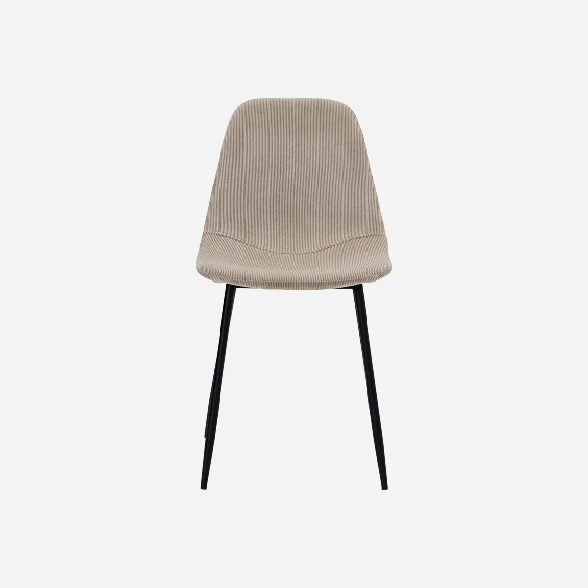 Stuhl ohne Armlehnen aus Cord und Stahl. Cord als Möbelbezug mag dir im ersten Augenblick ein wenig ungewohnt erscheinen. Allerdings muss man einfach zugeben, dass dieser plüschige Stoff unglaublich weich ist. Found von House Doctor ist der Beweis dafür, dass elegantes Design und unkonventionelle Stoffe Hand in Hand gehen können. Der Stuhl ist so geschnitten, dass du stundenlang bequem darauf sitzen kannst, ohne zu ermüden. Dank der zeitlosen Sandfarbe passt er zu jedem Tisch und Material. Mach Found zu deinem neuen Esszimmerstuhl oder Schreibtischstuhl.