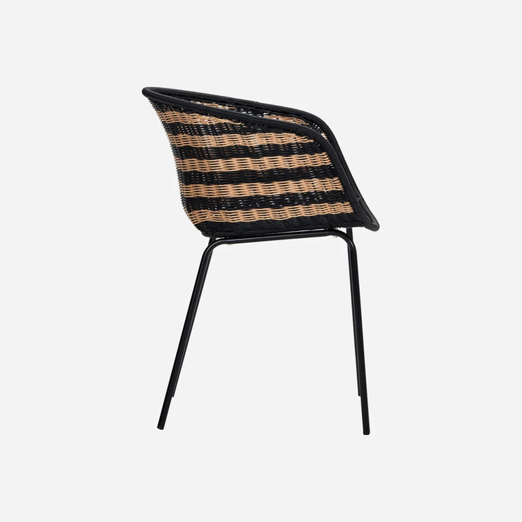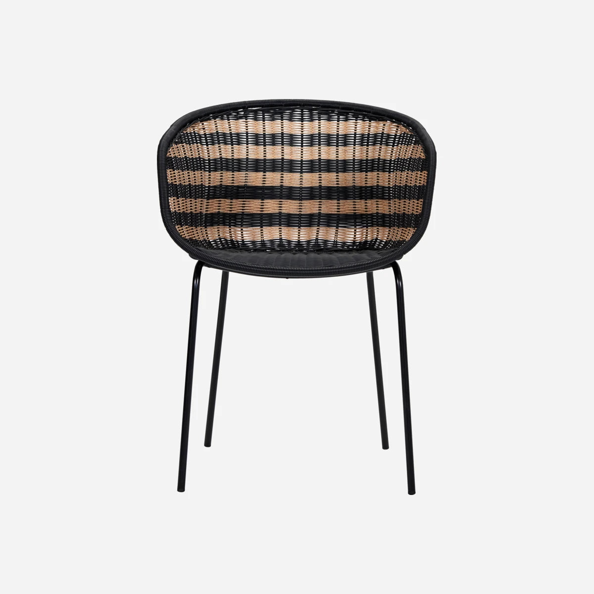 Die vielseitige Stuhl vereint modernes Design mit Funktionalität und ist sowohl für den Innen- als auch Außenbereich geeignet. Die Kombination aus Polyethylen und schwarzem Eisen verleiht dem Stuhl eine stilvolle und robuste Ausstrahlung. Die natur- und schwarzgestreiften Linien geben dem Stuhl einen einzigartigen und charmanten Look, der in jedem Esszimmer oder Lounge-Bereich ein Highlight setzt. Perfekt als Ess- oder Loungestuhl, bringt er eine Prise Eleganz und Charme in Ihre Wohnräume.- Vielseitig für Innen/Außen- Edgy mit Charme- Stilvolle Farbkombination- Einfache Montage erforderlichVerleihen Sie Ihrem Zuhause mit diesem zeitlosen Stuhl Charakter.