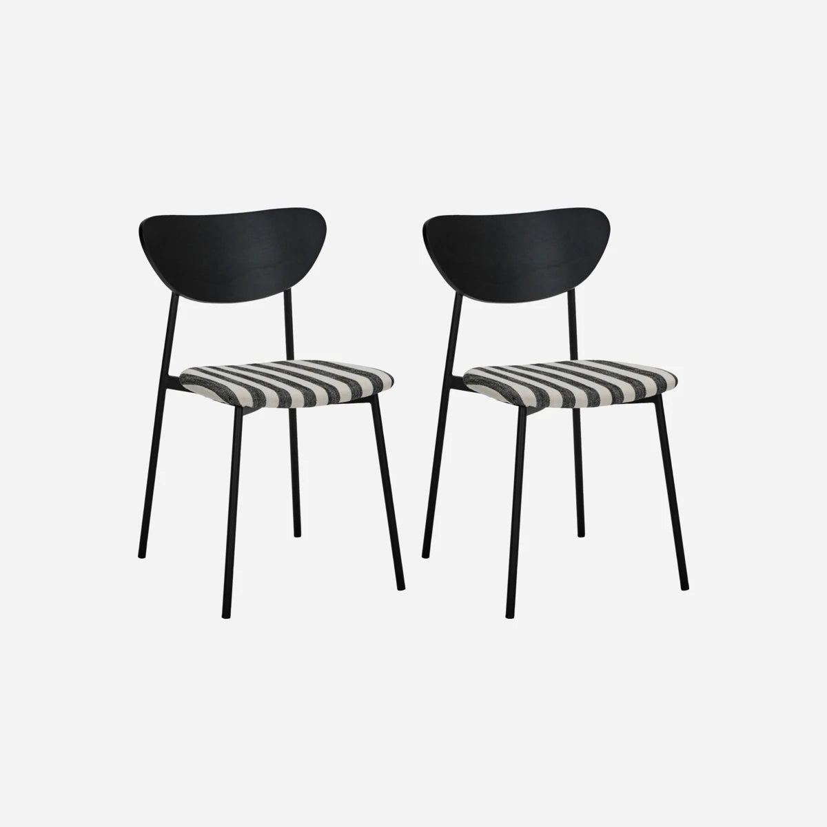 Verschönern Sie Ihr Esszimmer mit diesen stilvollen Stühlen mit schwarz-weiß gestreiftem Polyesterbezug und robusten Stahlbeinen. Das ergonomische Design sorgt für ein bequemes Sitzerlebnis, egal ob einzeln, in Gruppen oder kombiniert mit anderen HDMust-Stühlen. Der gestreifte Stoff verleiht einen sauberen und strukturierten Look und macht diese Stühle zu einer eleganten Ergänzung für jeden Essbereich.- Ergonomisches Design für Komfort- Schwarz lackierte Stahlbeine- Schwarz-weiß gestreifter Stoff- Vielseitig für verschiedene UmgebungenVerleihen Sie Ihrem Esszimmer einen Hauch von moderner Eleganz.