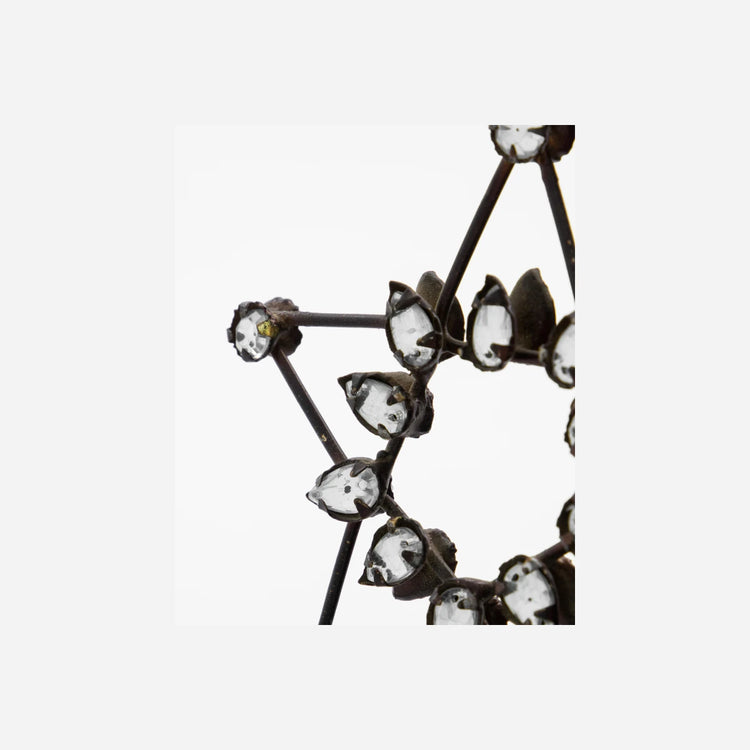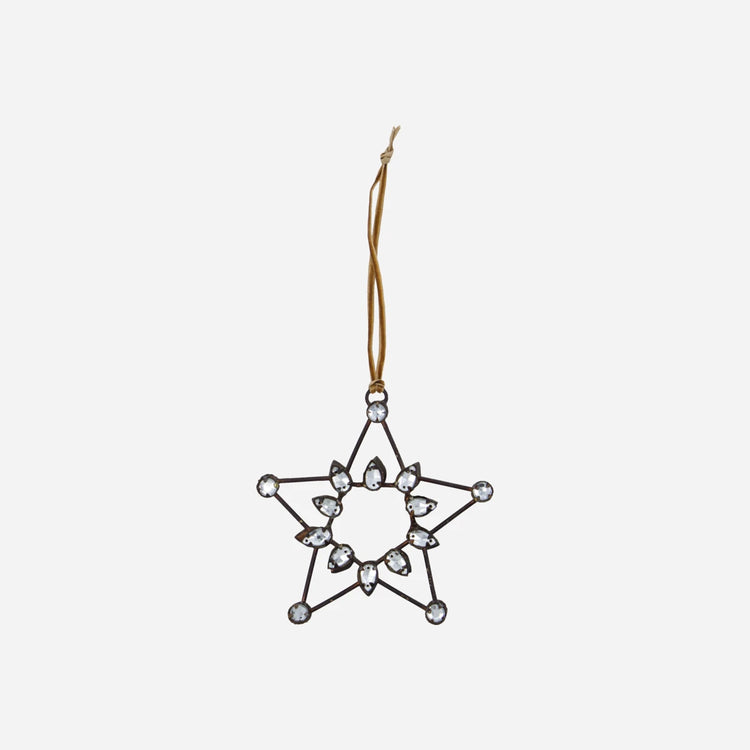Verleihen Sie Ihrem Zuhause eine festliche Atmosphäre mit diesem handgefertigten Stern-Ornament aus Eisen und einer antiken Kupferoptik. Funkelnde Acrylperlen schmücken beide Seiten des Sterns und reflektieren das Licht auf magische Weise.