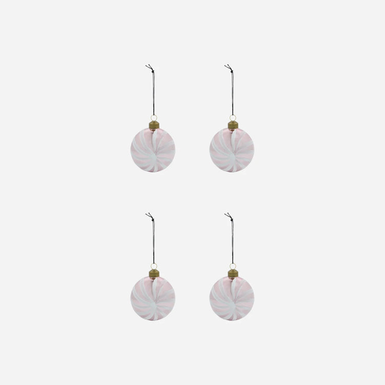 Verleihen Sie Ihrem Weihnachtsfest mit diesen eleganten, mundgeblasenen Glasornamenten eine besondere Note. Die zarte Rosafarbe, kombiniert mit einem feinen weißen Glitzermuster, verleiht jedem Stück festlichen Charme und eine moderne Ästhetik.