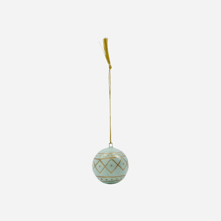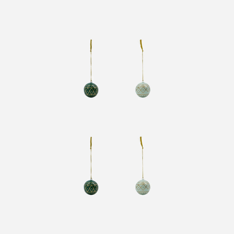 Erleben Sie die Magie der handgefertigten Papiermaché-Ornamente in Dunkelgrün und Mintgrün. Diese einzigartigen Kunstwerke, verziert mit handgemalten Goldmustern, verleihen Ihrem Weihnachtsbaum eine festliche und gemütliche Atmosphäre. Lassen Sie Ihrer Kreativität freien Lauf, indem Sie diese eleganten Ornamente an Ästen oder anderen dekorativen Arrangements anbringen. Der klassische Farbmix aus Dunkelgrün, Mintgrün und Gold bringt eine zeitlose Eleganz in Ihr Zuhause.
