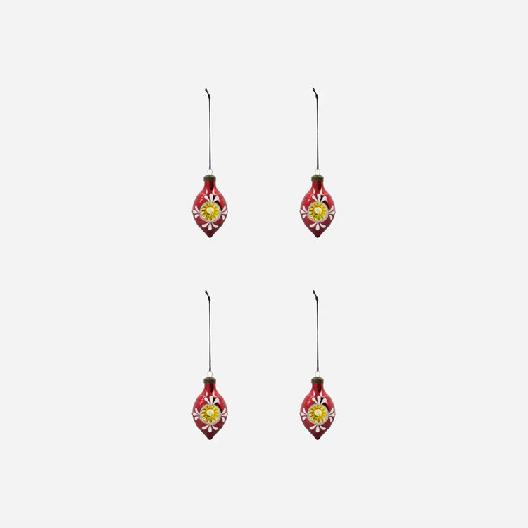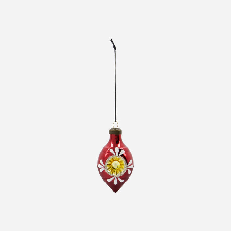 Verleihen Sie Ihrem Weihnachtsbaum einen Hauch von Nostalgie mit diesen exquisiten roten Weihnachtsornamenten. Mundgeblasen und handbemalt, bringen sie mit ihrem eleganten weißen Muster und der goldfarbenen Vertiefung mit Silberglimmer-Rand eine festliche Wärme in Ihr Zuhause.