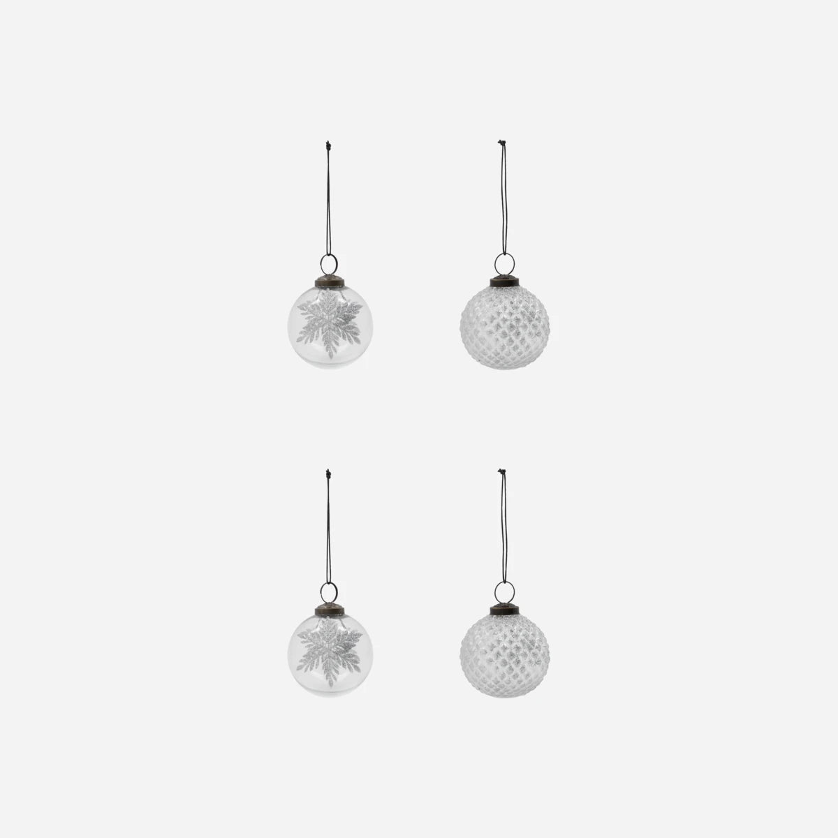 Fügen Sie einen Hauch von Nostalgie und Eleganz zu Ihrem Weihnachtsbaum hinzu. Diese handgefertigten, transparenten Glasornamente mit silbernen Details versprühen Vintage-Charme und Glanz. Perfekt zum Kombinieren mit anderen Weihnachtskugeln.