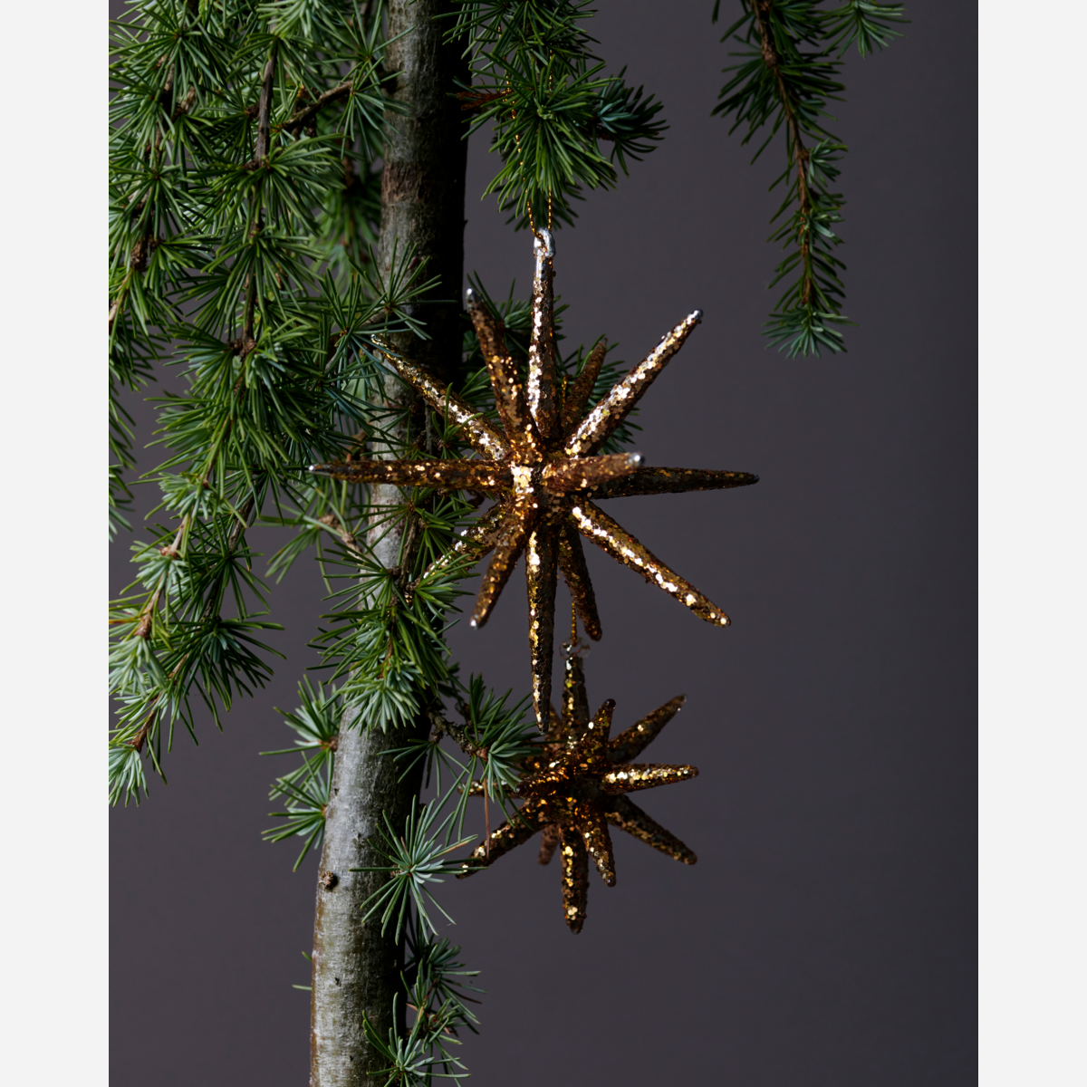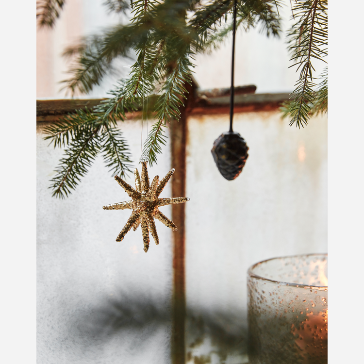 Gestalte auf die Schnelle eine magische Weihnachtsdekoration. Diese Packung mit 4 kleinen Sternen von House Doctor besteht aus Glas mit braunem Glitzer. Hänge sie an den Weihnachtsbaum, leg sie auf ein dekoratives Tablett oder benutze sie als Deko auf dem weihnachtlichen Esstisch. Für einen ausgewogenen Look, kannst du die Glassterne mit anderen Materialien und ähnlichen, neutralen und braunen Farben kombinieren.