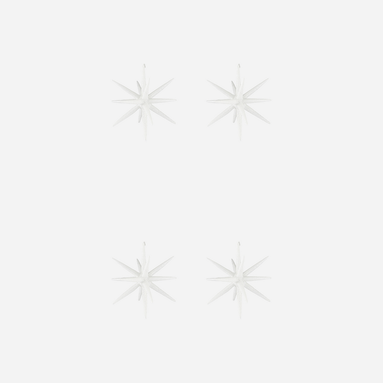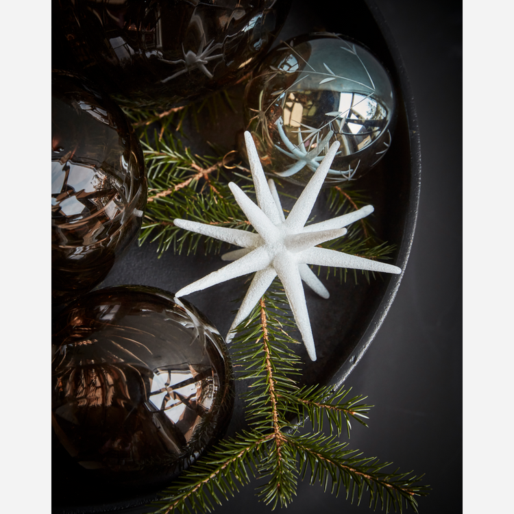 Gestalte mit wenig Aufwand eine magische Weihnachtsdekoration. Diese Packung mit 4 großen Sternen von House Doctor besteht aus Glas mit weißem Glitzer. Hänge sie an einen grünen Zweig, an den Weihnachtsbaum oder benutze sie als Deko auf dem weihnachtlichen Esstisch. Für einen leichten und hellen Look, kannst du die Glassterne mit Silber und anderen Materialien kombinieren, um so einen ausgewogenen Ausdruck zu schaffen.