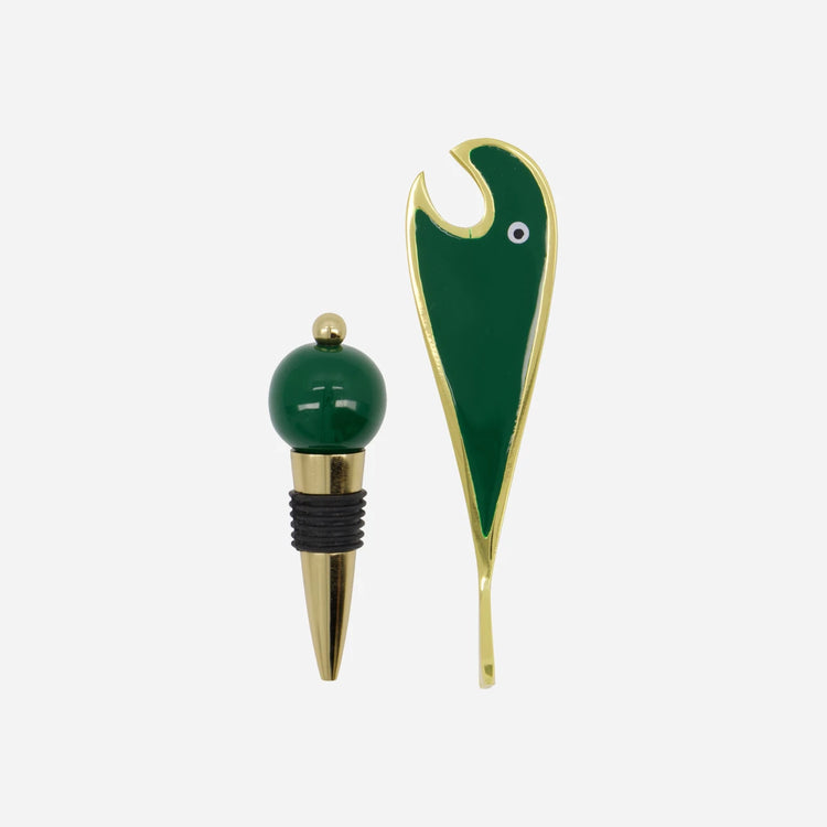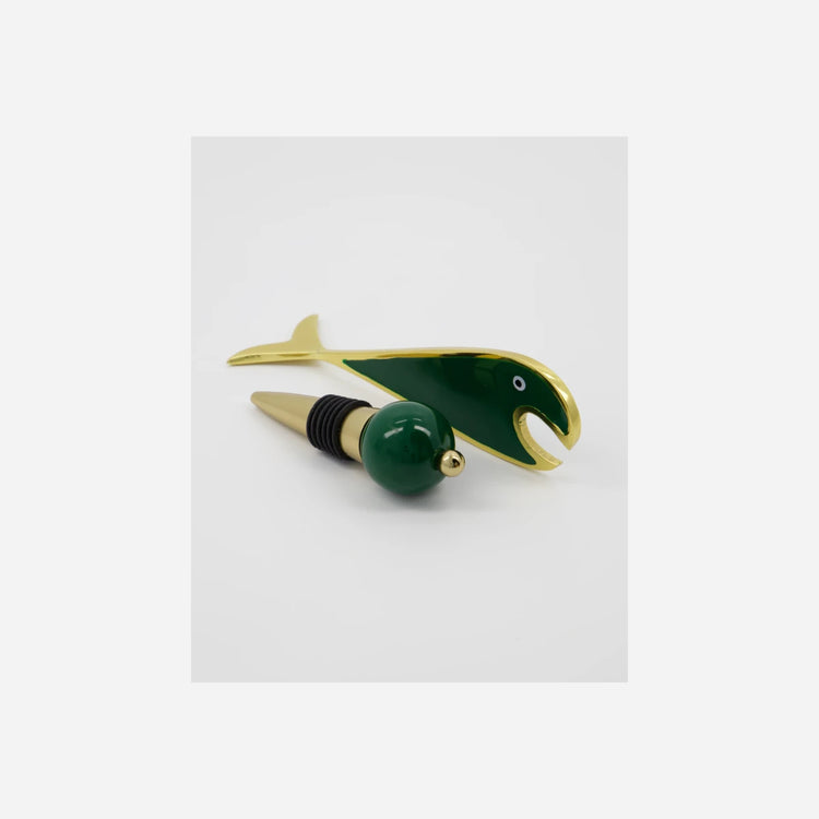 Setzen Sie ein fröhliches Highlight in Ihrer Küche mit diesem stilvollen Set, das einen Flaschenverschluss und einen Flaschenöffner in einem auffälligen Gold-Grün-Design umfasst. Der Flaschenöffner besticht durch seine kreative Form als Fisch, während der Verschluss durch seine praktische Silikoneinlage überzeugt, die für eine sichere Versiegelung sorgt. Ideal als Gastgebergeschenk oder einfach, um Ihrem Zuhause einen Hauch von Farbe und Freude zu verleihen.- Goldene Oberfläche, grüne Details- Kreativer Fisch-Design-Öffner- Praktischer, sicherer Verschluss- Perfektes GastgebergeschenkFügen Sie Ihrem Küchenbereich einen Hauch von Eleganz hinzu!