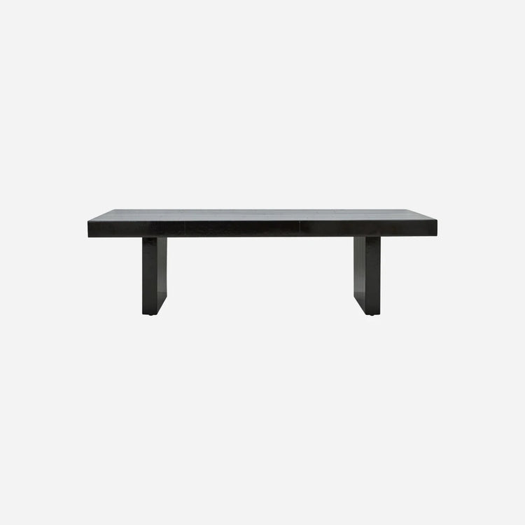 Dieser handgefertigte Couchtisch begeistert mit seinem markanten Design und seiner hochglänzenden schwarzen Oberfläche. Die breiten Mangoholzkacheln setzen einen modernen Akzent. Die robusten, querlaufenden Tischbeine verleihen dem Ensemble Stabilität. Das Ergebnis: ein beeindruckendes Statement-Piece für Ihr Wohnzimmer, das garantiert bewundernde Blicke auf sich zieht. Perfekt, um eine stilvolle und gleichzeitig entspannte Atmosphäre zu schaffen – ob neben dem Sofa, als zentraler Blickfang oder in Kombination mit minimalistischer Dekoration.