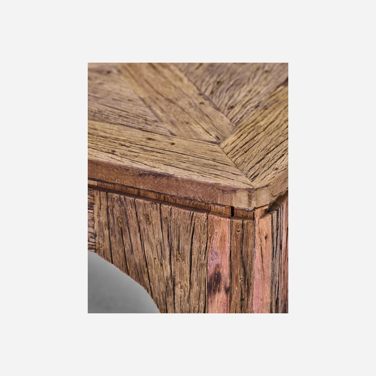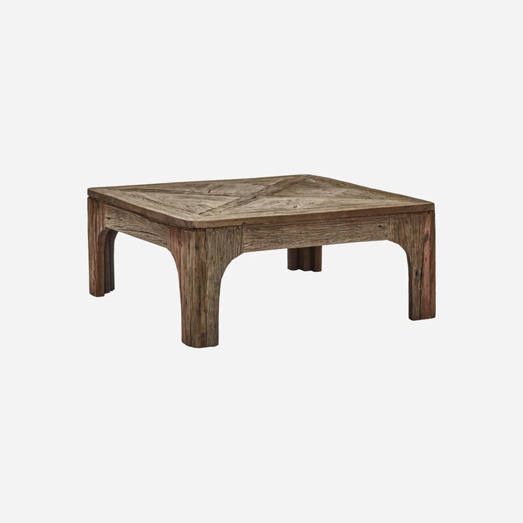 Dieser Couchtisch aus recyceltem Holz und MDF verleiht Ihrem Wohnraum eine besondere Note. Die quadratische Form und das einzigartige Muster der Tischplatte spiegeln handwerkliches Können wider und verleihen dem Raum Charakter und Charme. Setzen Sie ihn als Mittelpunkt Ihres Wohnzimmers ein und genießen Sie seine zeitlose Eleganz.- Hergestellt aus recyceltem Holz- Einzigartiges Musterdesign- Quadratische und funktionale Form- Natürliche FarbgebungBringen Sie mit diesem Couchtisch Stil und Funktionalität in Ihr Zuhause.