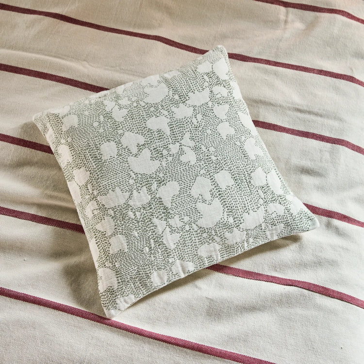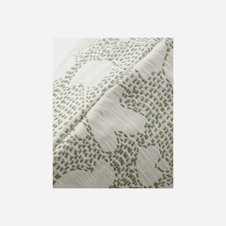Schaffe eine ruhige und natürliche Atmosphäre mit HDMori. Dieser handgefertigte Kissenbezug ist aus reiner Baumwolle gewebt und hat ein abstraktes Blättermuster in Off-White und Khaki. Die strukturierte, zweifarbige Oberfläche verleiht deinem Sofa, Sessel oder Bett einen entspannten und persönlichen Touch.br>