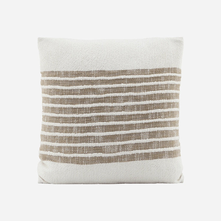 Neue Kissenbezüge können deinem Zuhause einen ganz neuen Look geben. Yarn besteht aus dick gewebter Baumwolle, die dem Stoff eine wunderbare Struktur verleiht. Die Vorderseite präsentiert sich mit hellbraunen Streifen, während die Rückseite aus schlichter und weicher weißer Baumwolle besteht. Schaffe entspannende Vibes, indem du Yarn zusammen mit anderen neutralen Farben verwendest. Du kannst aber auch gerne mit anderen Materialien und Mustern experimentieren und deinen ganz persönlichen Look kreieren. Fülle dein Bett mit dekorativen Kissen von House Doctor oder mach es dir mit ihnen auf deinem Sofa so richtig gemütlich. Dieser Kissenbezug passt auf unser quadratisches Kissen (203015000).