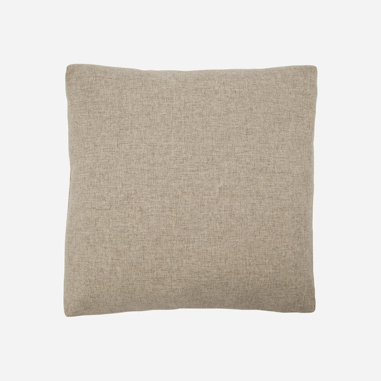 Square cushion with filling and a textured woven surface in sand. Works as a base element for sofas, benches, or chairs.