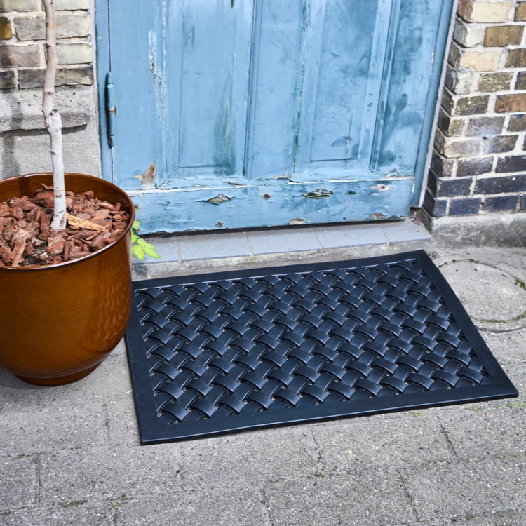 Halte deinen Eingangsbereich sauber und einladend – mit der Fußmatte HDBraid. Sie ist aus strapazierfähigem, geflochtenem Gummi in einem zeitlosen Schwarz gefertigt. Dank der rutschfesten Unterseite bleibt die Matte immer an ihrem Platz, während die strukturierte Oberfläche Schmutz zuverlässig von deinen Schuhen entfernt.