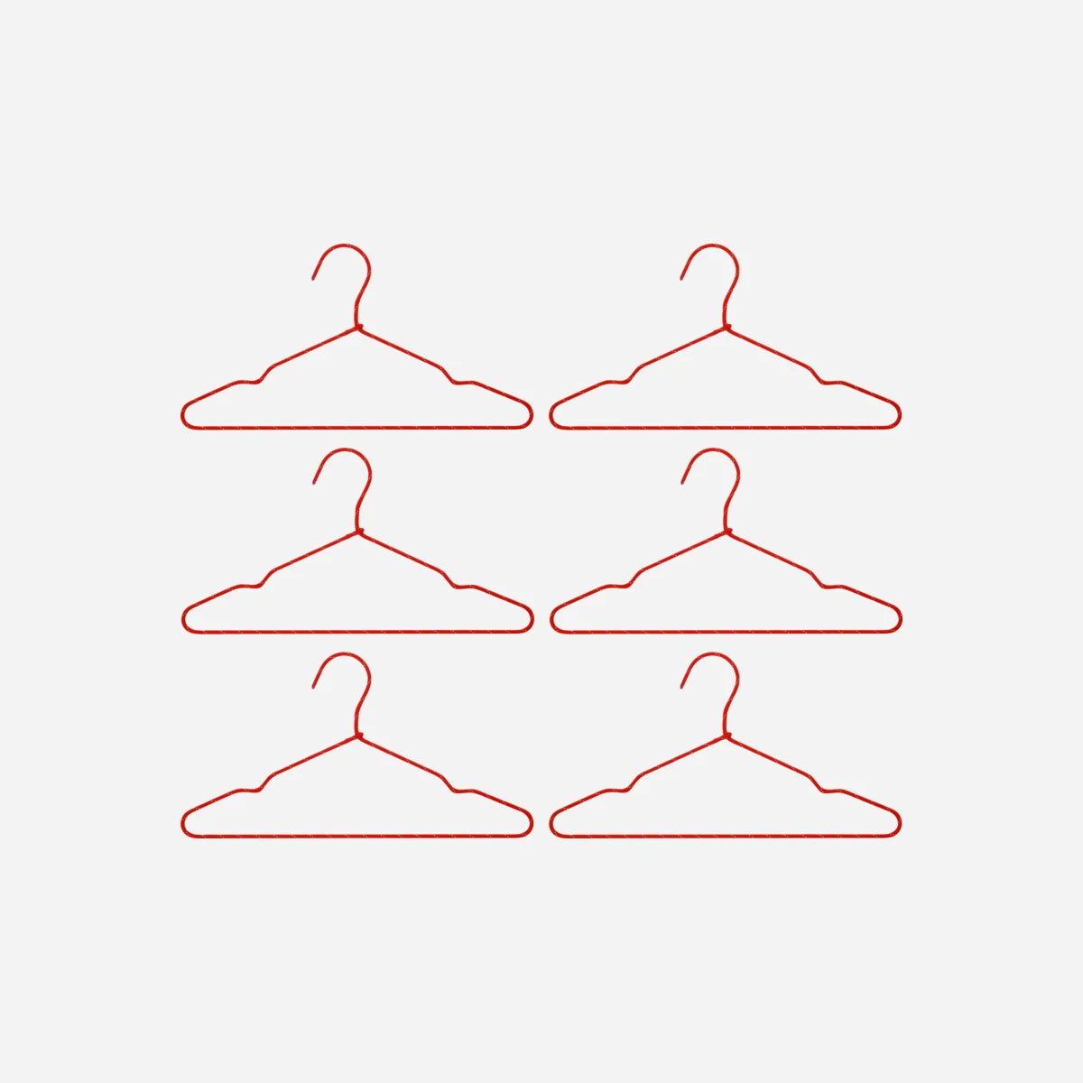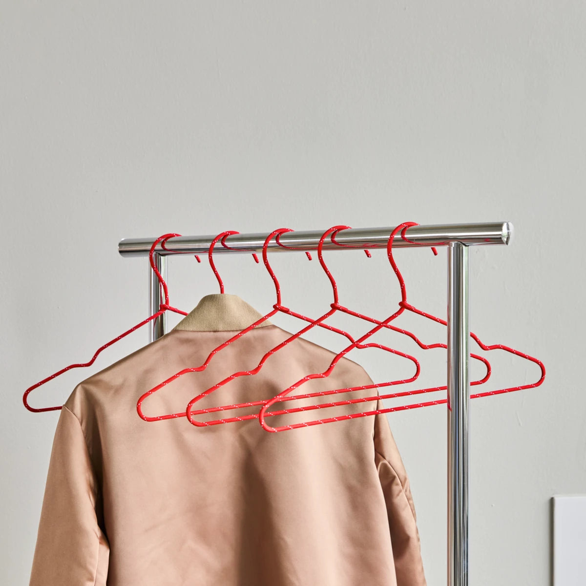 Halte mit einem farbenfrohen Twist Ordnung in deinem Kleiderschrank. Dieses Set aus sechs HDWire-Kleiderbügeln ist aus robustem Eisen gefertigt und hat ein kräftiges, leuchtend rotes Finish. Das schmale, aber robuste Design mit seiner glatten Beschichtung schont deine Kleidung und sorgt gleichzeitig für einen aufgeräumten Look.