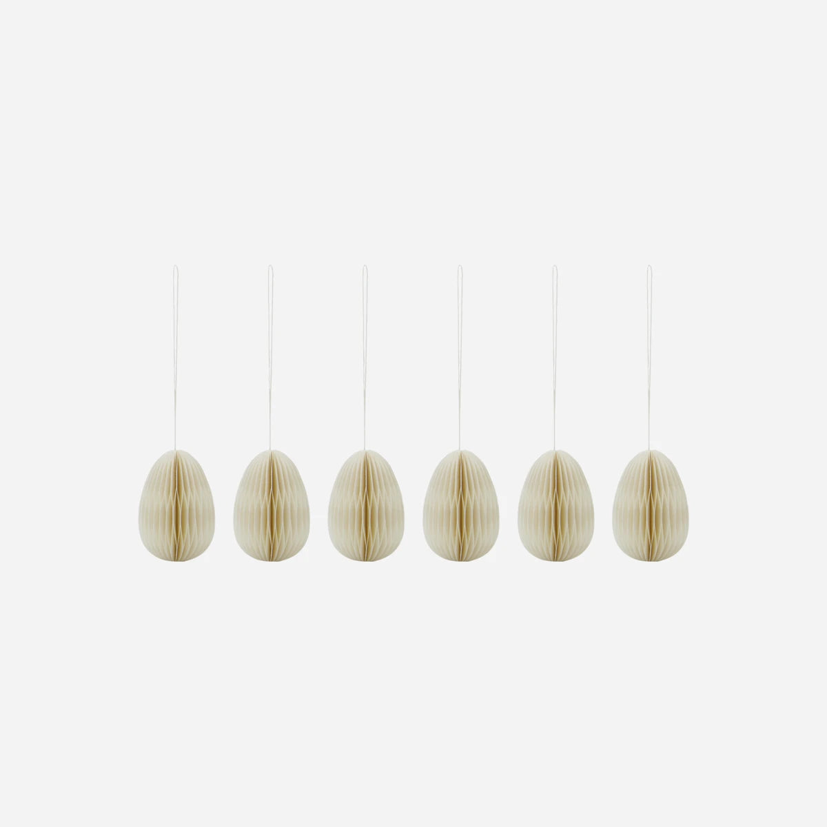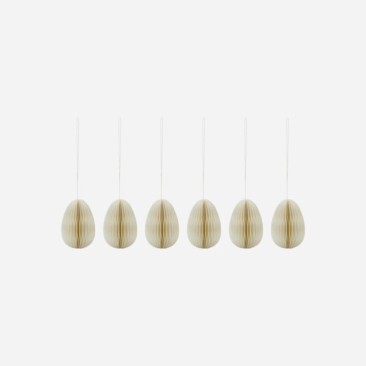 Verwandeln Sie Ihr Zuhause mit diesem Set aus sechs handgefertigten, fein gefalteten Papireiern in natürlichem Off-White, das perfekt für die Osterdekoration geeignet ist. Diese stilvollen Accessoires fügen sich nahtlos in verschiedene Dekorthemen ein und bieten eine subtile Eleganz, die jeden Raum veredelt. Jedes Ei ist mit einer Schlaufe zum einfachen Aufhängen ausgestattet, sodass Sie Ihrer Kreativität freien Lauf lassen können. Platzieren Sie sie an Ihrem Osterbaum, Türgriffen oder in einer dekorativen Anordnung, um eine warme und einladende Atmosphäre zu schaffen.- Set aus 6 Stücken- Handgefertigt für Einzigartigkeit- Leicht und einfach zu hängen- Elegantes Off-White DesignIntegrieren Sie diese stilvollen Papireier in Ihre Osterdekoration und schaffen Sie ein harmonisches Ambiente in Ihrem Zuhause.