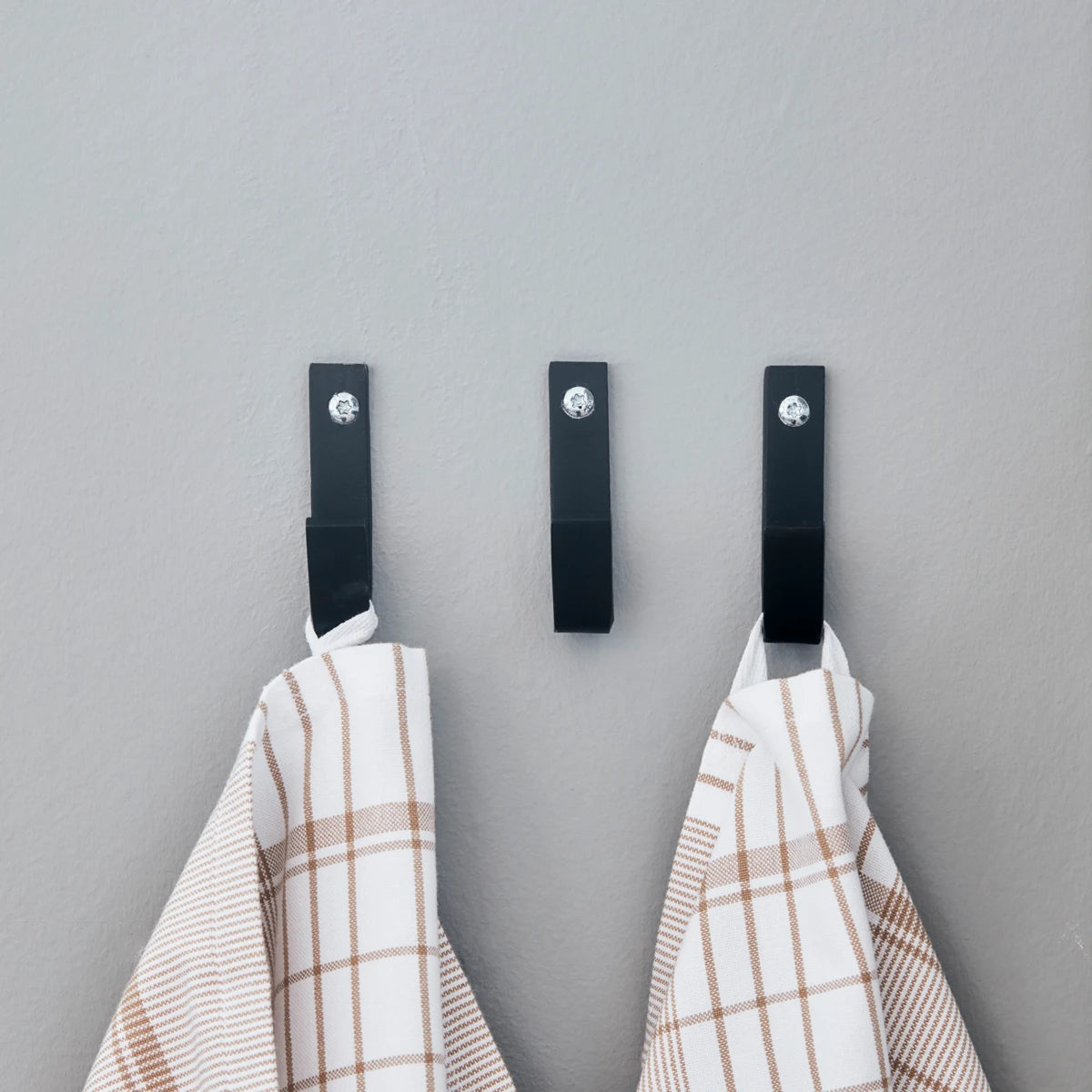 Statt dein Badezimmer komplett zu renovieren, kannst du ihm mit diesem Set aus 3 großen schwarzen Haken ein kleines Makeover verpassen. Kleine Details können eine große Wirkung haben und diese schwarzen Haken von House Doctor sind ein gutes Beispiel dafür. Bath so heißen die Haken präsentiert sich in einem schlichten Design mit einem zeitlosen schwarzen Finish. Verwende sie für deine Handtücher und Bademäntel, aber auch für Körbe mit Haar- und Hautpflegeprodukten. Eine clevere Aufbewahrungslösung für kleinere Räume. Zusammen mit dem Rest des Bath-Sortiments von House Doctor kannst du im Handumdrehen den Look und die Stimmung in deinem Badezimmer verändern und ein schönes Kontrastelement hinzufügen. Auch in einer kleineren Version verfügbar.