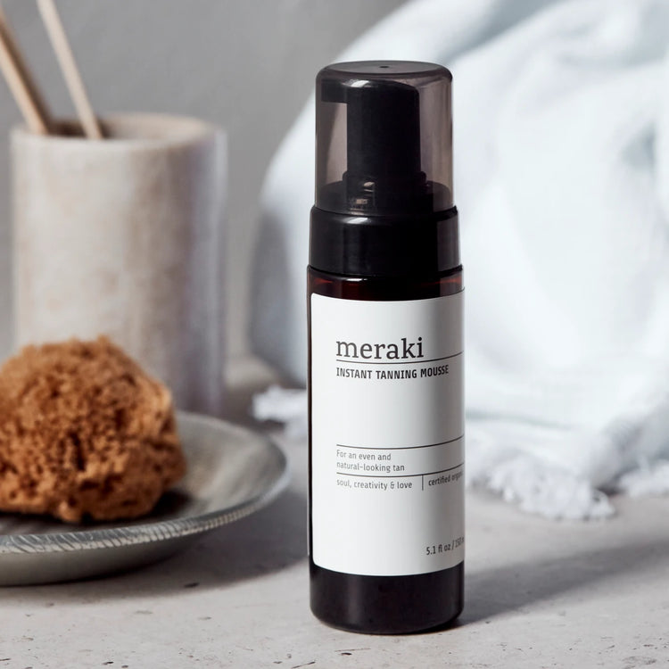Zaubere mit der Selbstbräuner-Mousse mit Sofort-Effekt von Meraki einen natürlichen, sommerlichen Teint auf deine Haut. Die natürliche Farbe des zertifizierten Bio-Selbstbräuners wurde aus Karamell gewonnen. Der Bräunungseffekt ist direkt sichtbar und wird sich über die nächsten 26 Stunden voll entfalten. Deine Haut erhält einen gleichmäßigen Teint und bleibt weich und geschmeidig. Aloe vera und Glycerin versorgen sie zusätzlich mit Feuchtigkeit.Verwende vor der Behandlung den Peelinghandschuh oder das Körperpeeling von Meraki und creme besonders trockene Hautstellen wie Ellbogen und Knie mit einer Bodylotion ein, um die besten Bräunungsergebnisse zu erzielen. Verteile die Mousse gleichmäßig mit dem Selbstbräuner-Handschuh von Meraki auf Körper und Gesicht. Falls du keinen Handschuh verwendest, solltest du deine Hände im Anschluss gründlich waschen. Lass die Mousse vollständig einziehen und trocknen, bevor du dich anziehst, um zu verhindern, dass die Farbe abgetragen wird. Der Bräunungseffekt nimmt nach und nach innerhalb einiger Tage ab. Trage die Mousse nach Bedarf erneut auf, um die Wirkung beizubehalten. Mit dem Bio-Kosmetiklabel ECOCERT Cosmos ausgezeichnet.
