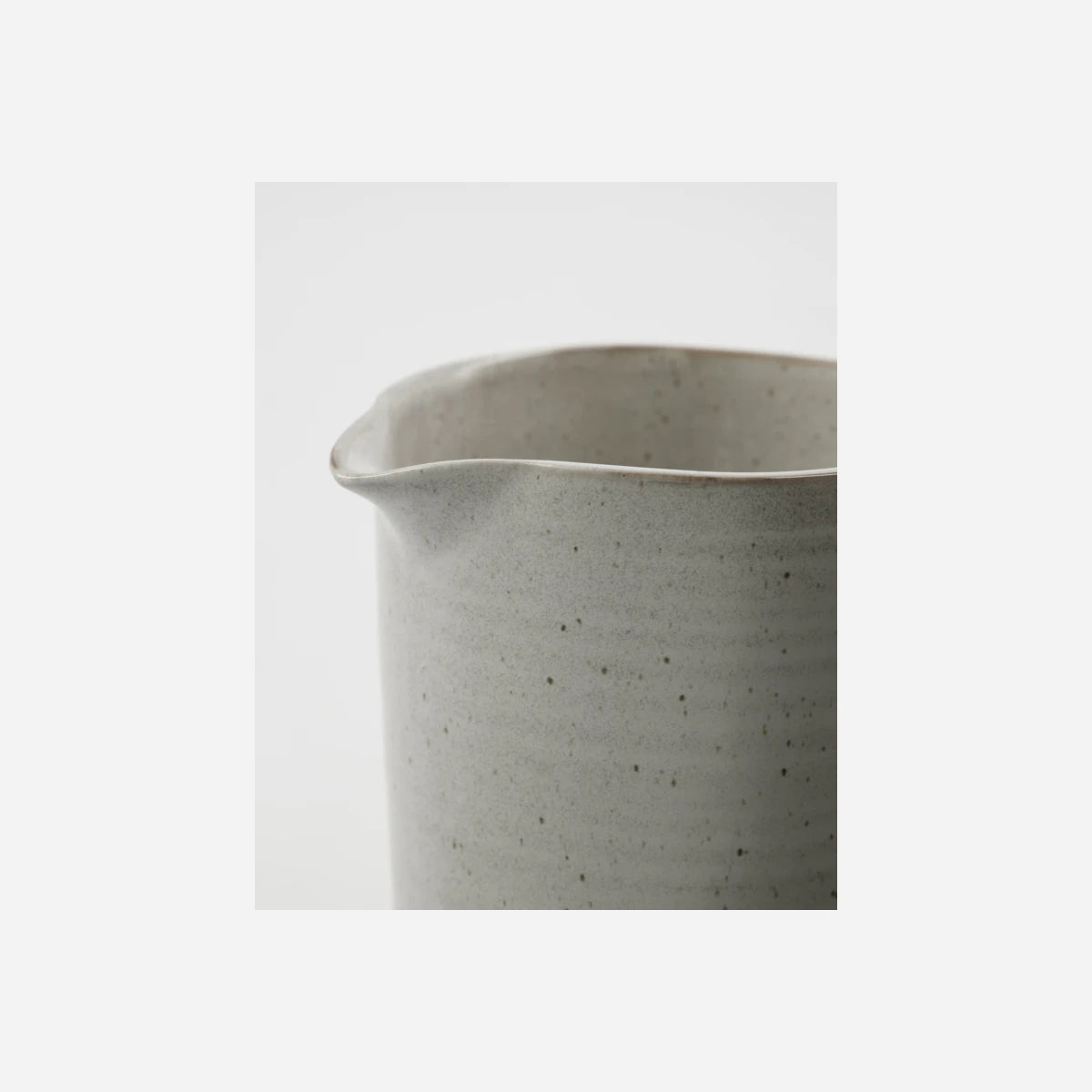 Ein rustikaler Steinzeugkrug für den täglichen Bedarf und darüber hinaus. Der weiße Krug namens Pion rundet Ihren Frühstücks- oder Esstisch lässig ab. House Doctor hat ihm eine reaktive Glasur verliehen, die diesen Artikel einzigartig macht, während die Farbe ihn zu einem alltäglichen Essential macht. Benutzen Sie die Kanne morgens als Milchkännchen und zum Servieren der Soße zum Abendessen. Aufgrund der matten Textur der Glasur kann es im Laufe der Zeit zu Kratzern kommen, wenn Sie Ihren Pion-Artikel verwenden. Dies trägt einfach zum Charme und der robusten Ausstrahlung des Designs bei.