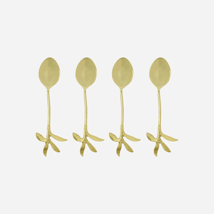 Diese Servierlöffel aus Edelstahl sind ein elegantes Highlight für Ihre Tischdekoration. Mit ihrem antiken Gold-Finish und einem Messinggriff in Form eines Zweigs mit Blättern, vereinen sie Funktionalität und ästhetische Raffinesse. Ideal für besondere Anlässe oder um alltägliche Mahlzeiten zu verschönern. Das Set besteht aus vier kunstvoll gestalteten Löffeln, die sowohl praktisch als auch dekorativ sind.- Antikes Gold-Finish.- Messinggriff mit Blattmotiv.- Set mit vier Löffeln.- Organische Form für Komfort.Verleihen Sie Ihrem Tisch eine besondere Note.