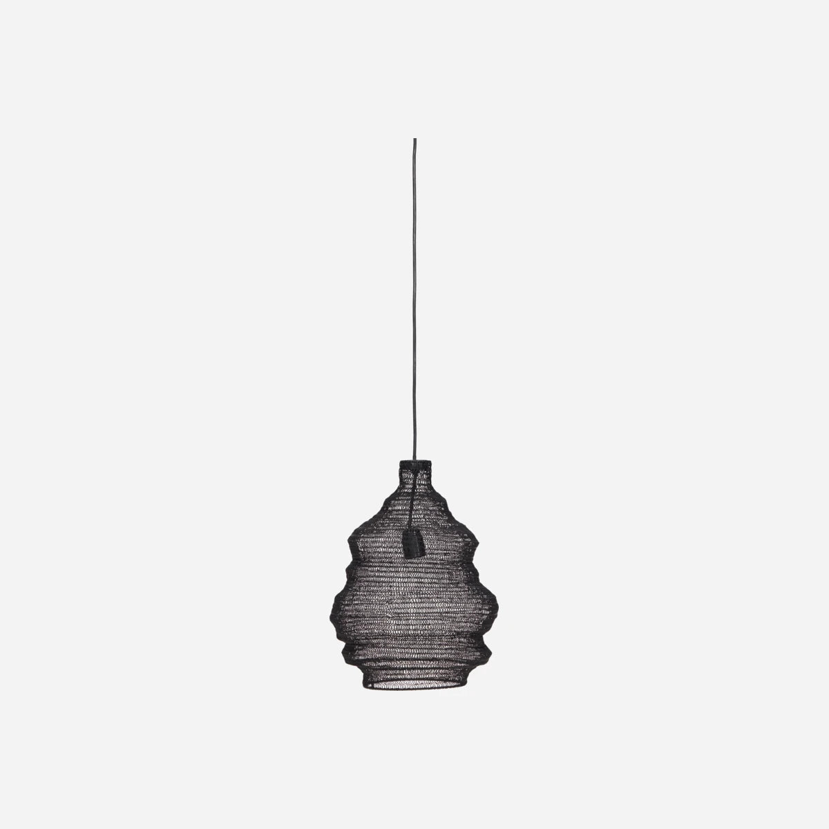 Looking for the final touch to your home decor? This pendant in black mesh lets the light shine through to create a inviting atmosphere. Even though the materials hint at an industrial touch, the design suits any interior style due to its versatility: from boho to contemporary and minimalist. Hang the pendant from House Doctor above your dinner table or kitchen island, in your bedroom or in the corner of the living room to add a wonderful glow. After unboxing your lamp, you can easily adjust and correct its shape.