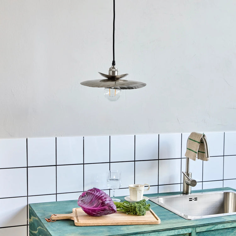 Der Lampenschirm HDHatt ist aus Eisen gefertigt und besticht durch sein gebürstetes Silberfinish. Dank seines minimalistischen und breiten Designs verteilt der Lampenschirm das Licht auf eine sanfte und angenehme Weise im Raum. Kombiniere ihn einfach mit einer Fassung und kreiere deine ganz persönliche Deckenleuchte.