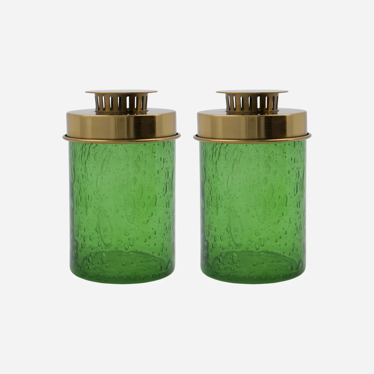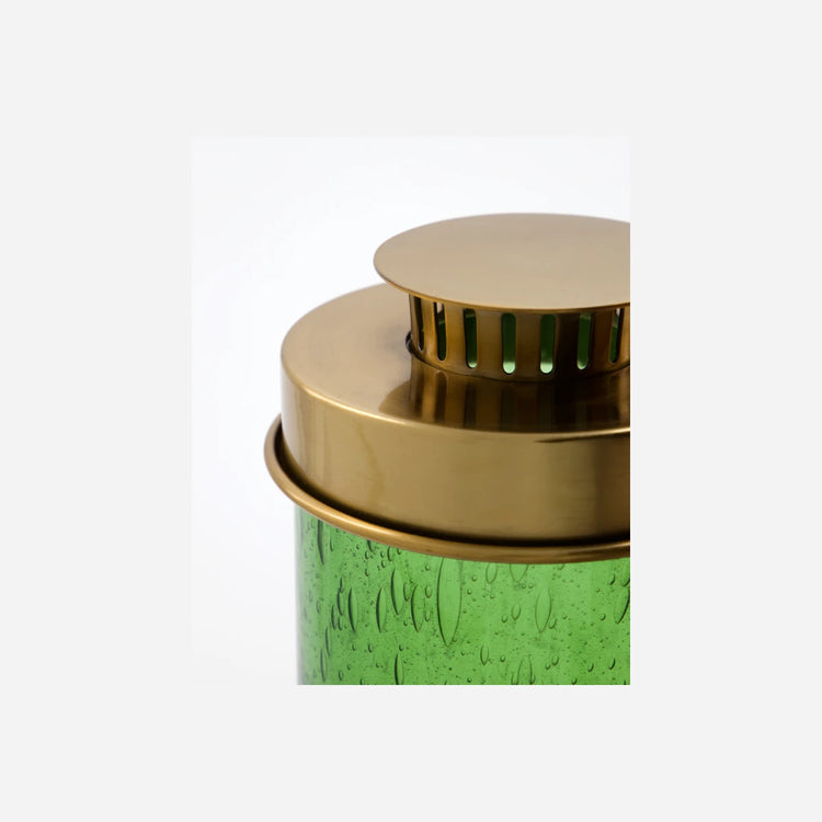 Dieses Set aus zwei mundgeblasenen Teelichthaltern verleiht Ihrem Wohn- oder Essbereich eine Atmosphäre voller Charme und Gemütlichkeit. Das grüne Glas mit einzigartigen Bläscheneeffekten trifft auf einen schicken, messingfarbenen Metalldeckel – jedes Stück ein Unikat, das sanftes, einladendes Licht spendet. Als harmonisches Ensemble auf dem Couchtisch, kombiniert im Regal mit anderen Windlichtern oder einzeln im Flur für stimmungsvolle Akzente.