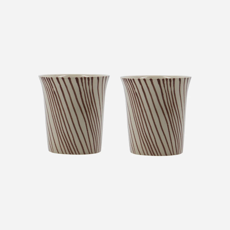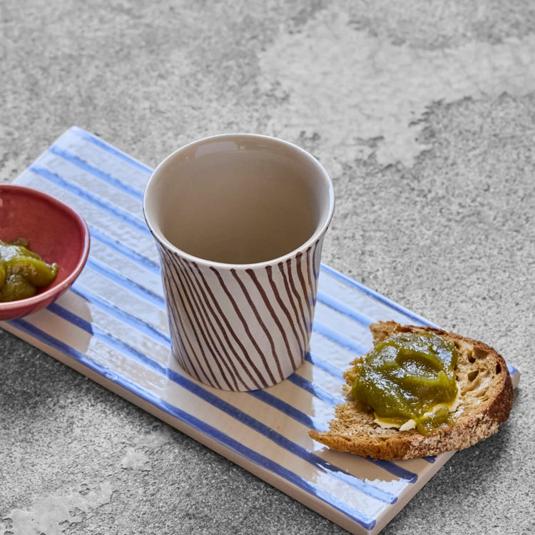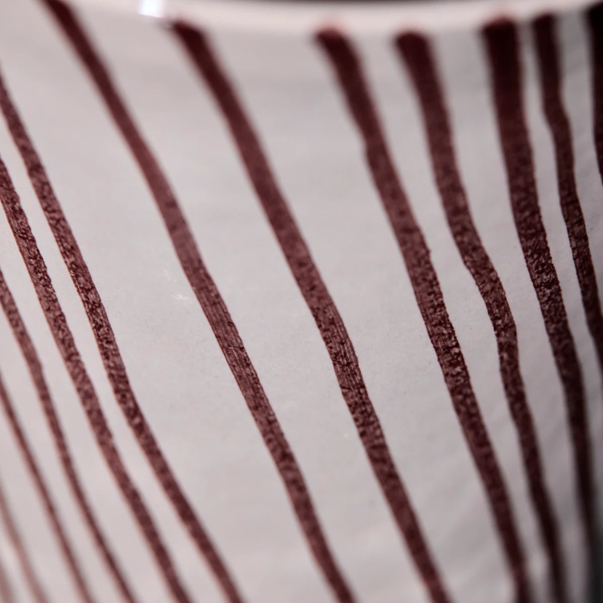Das handgemalten Streifenmuster in Braun dieses Bechers bringt pure Individualität auf den Tisch. Die leicht konische Form liegt angenehm in der Hand und verleiht Ihren Kaffee- oder Teemomenten das gewisse Etwas. Das Steinzeug strahlt Qualität aus und das lebendige Design bezaubert – jeden Morgen und bei jeder Tafel. Kombinierbar mit schlichten oder bunten Serien für starke Akzente im Alltag.