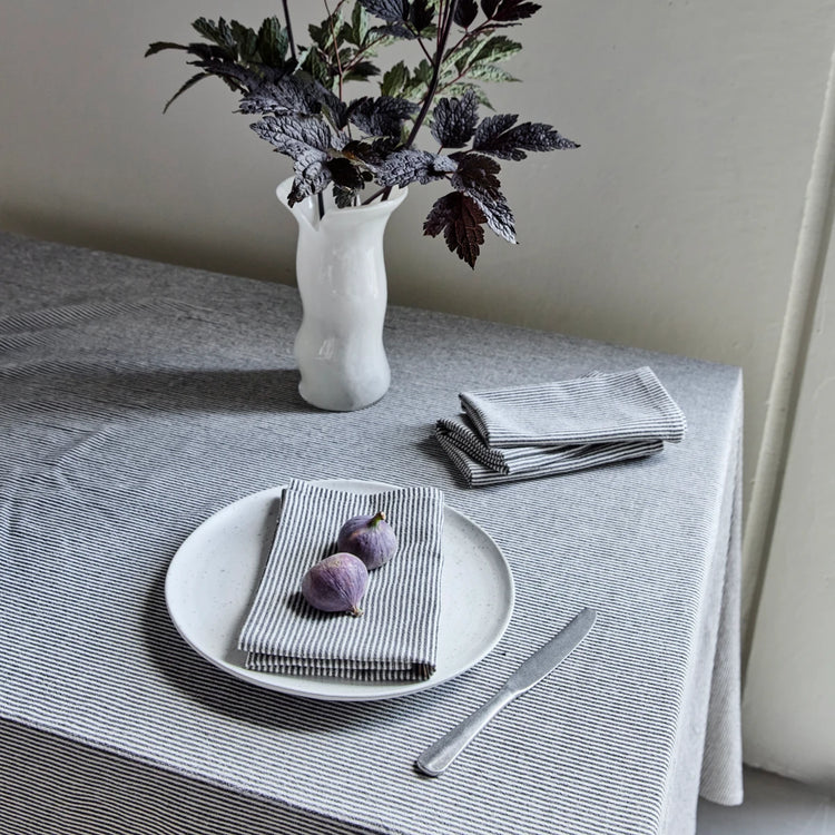 Verleih deinem gedeckten Tisch einen ruhigen und stilvollen Look mit den Stoffservietten HDBlock. Sie sind aus einer weichen Baumwoll-Leinen-Mischung gewebt und kommen im 4er-Set. Das zeitlose Streifenmuster in Schwarz und Sand bringt eine entspannte Eleganz auf den Tisch.
