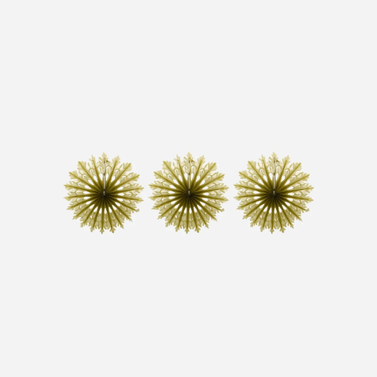 Schaffen Sie eine elegante Atmosphäre mit diesen handgefertigten Papierfächern in einem warmen, goldenen Farbton, der sich perfekt für festliche Anlässe eignet. Mit ihren filigranen Ausschnitten sind sie einfach zu montieren und vielseitig für jede Dekoration einsetzbar. Hängen Sie sie in Fenster, an Äste oder an Wände, um Ihrem Zuhause das gewisse Etwas zu verleihen.
