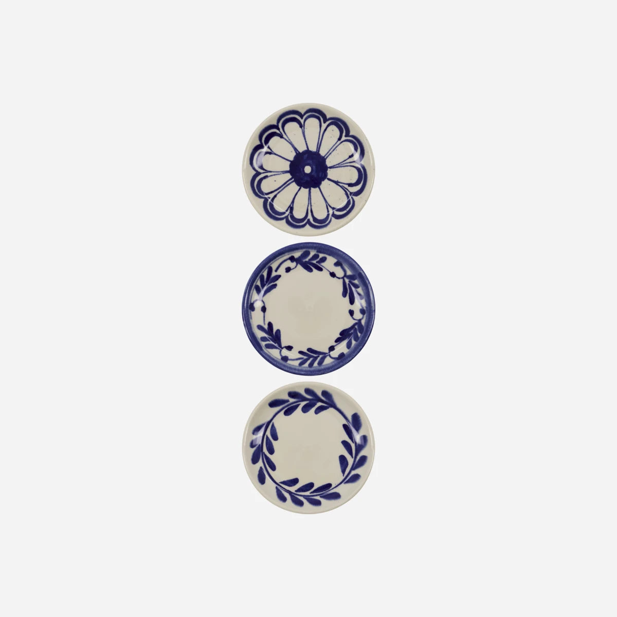 Dieses Tellerset verleiht Ihrer Tafel einen Hauch von Kunsthandwerk. Die drei handbemalten Steingutteller mit ihren charakteristischen blauen Mustern machen jede Mahlzeit zu einem ästhetischen Erlebnis. Perfekt für Vorspeisen, Desserts oder als dekorative Akzente auf Ihrem Esstisch.