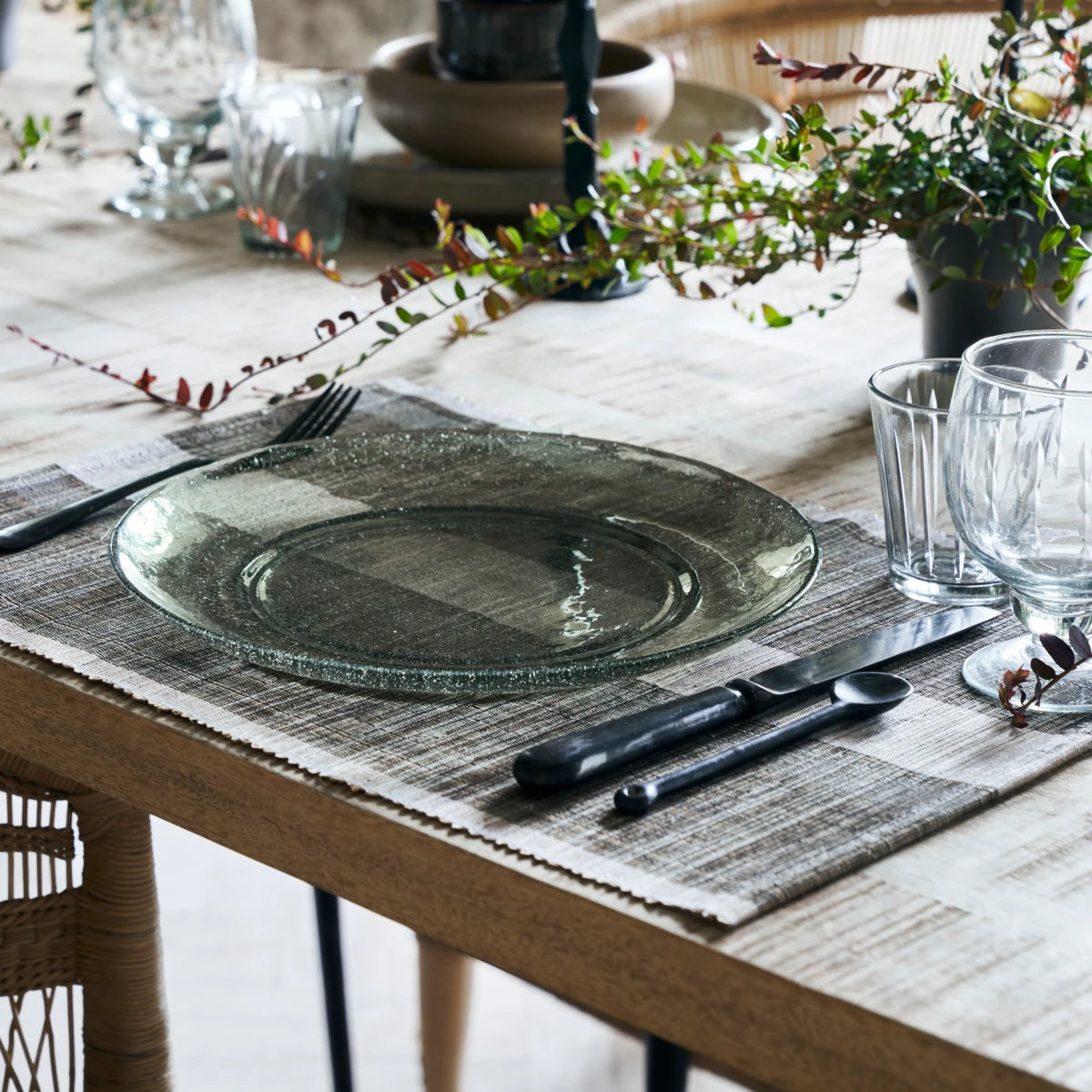 Genießen Sie Ihre Mahlzeiten auf lässige und farbenfrohe Art und Weise. Dieses Set aus 2 großen Tellern von House Doctor besteht aus grünem Glas und verleiht Ihrem Esstisch eine leichte und einladende Note. Wenn Sie genauer hinschauen, werden Sie die kleinen Luftblasen im Glas bemerken, die dem Gesamtdesign Charakter verleihen. Ein Design, das diesen Sommer auf Ihrem Gartentisch wirklich hervorsticht. Vom Abendessen mit Freunden bis hin zu ungezwungenen Zusammenkünften sind diese Teller mit dem Namen „Rain“ ideal. Kombinieren Sie es mit den Gläsern aus der gleichen Serie für einen Tisch, der auf den Punkt kommt.