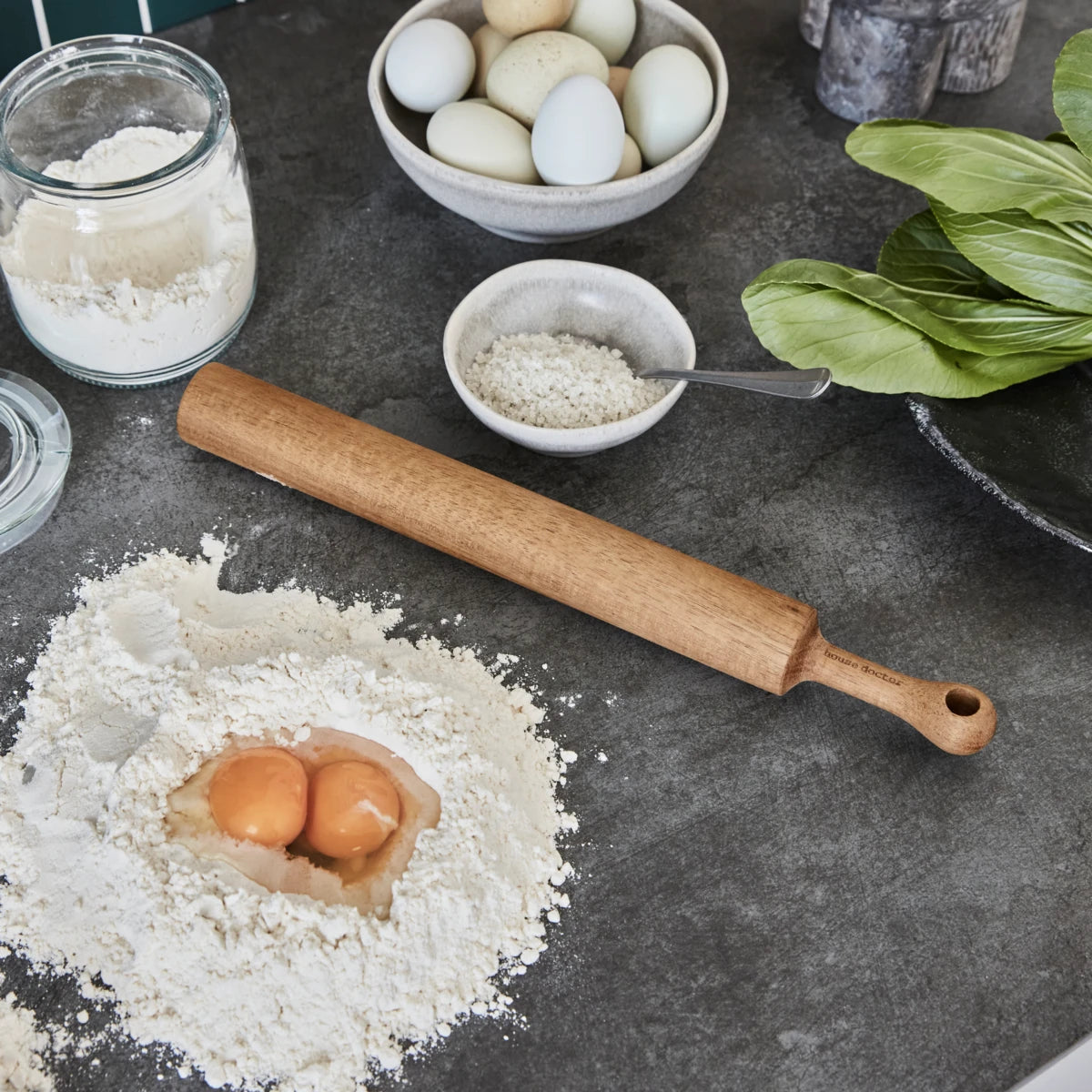 Gefertigt aus hochwertigem Akazienholz, ist dieses Küchenwerkzeug ein unverzichtbarer Helfer für Ihre Backprojekte. Der glatte Zylinder ermöglicht das gleichmäßige Ausrollen verschiedener Teigsorten, einschließlich Marzipan, und bietet Komfort und Funktionalität in jedem modernen Küchenumfeld. Der praktische Griff sorgt für eine mühelose Handhabung und ist mit einem Loch versehen, um das Aufhängen und Verstauen zu erleichtern. Ein zeitloses Design, das sowohl funktional als auch dekorativ ist.- Hergestellt aus Akazienholz.- Glatte, zylindrische Form.- Einfache Aufbewahrung.- Komfortabler Griff.Integrieren Sie dieses unverzichtbare Werkzeug in Ihre Küche!