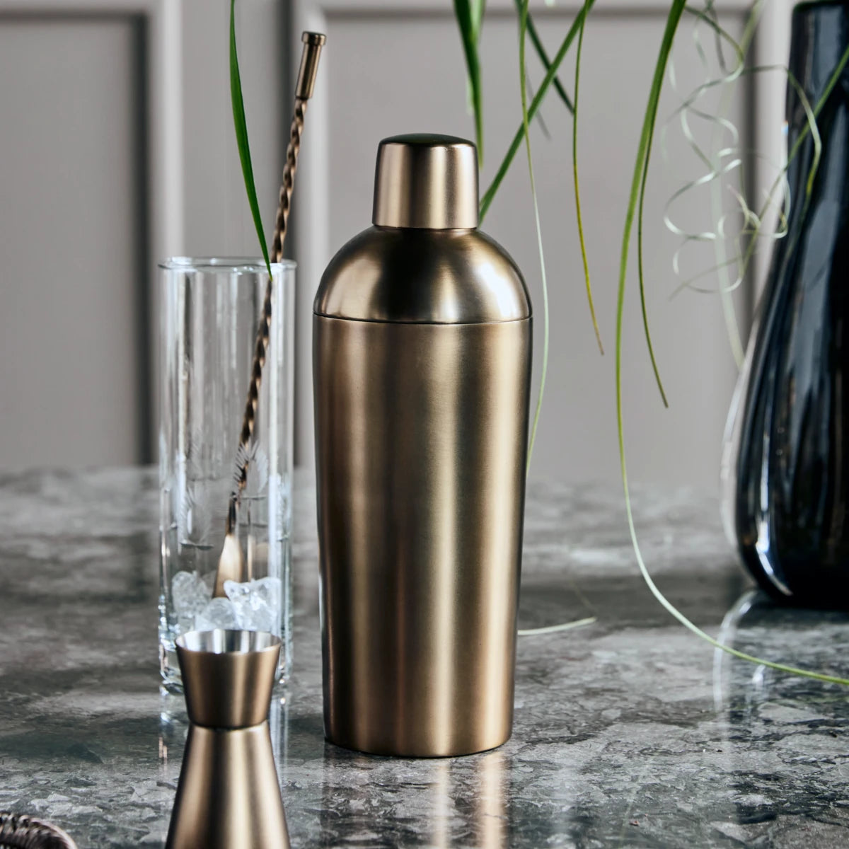 Dieser elegante Shaker aus Edelstahl mit Antikmessing-Optik ist ein Muss für jede Hausbar. Er besticht durch sein zeitloses und stilvolles Design, egal ob Sie Cocktails für Gäste mixen oder einen ruhigen Abend zu Hause genießen.- Rostfreier Stahl- Antikmessing-Finish- Fassungsvermögen: 750 ml- Einzigartige Oberfläche kann variierenVerleihen Sie Ihrer Hausbar mit diesem eleganten Shaker das gewisse Etwas.