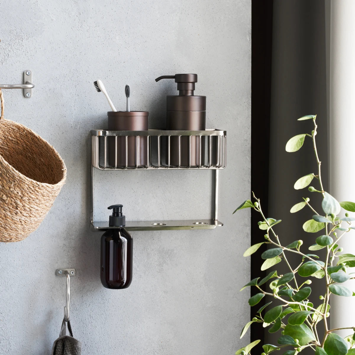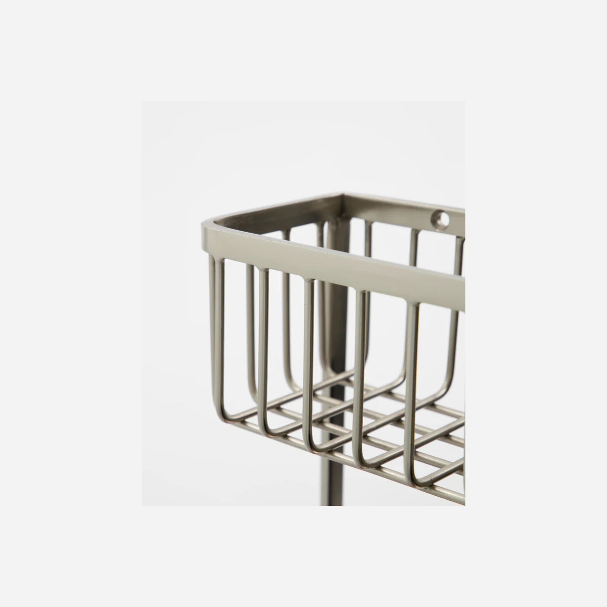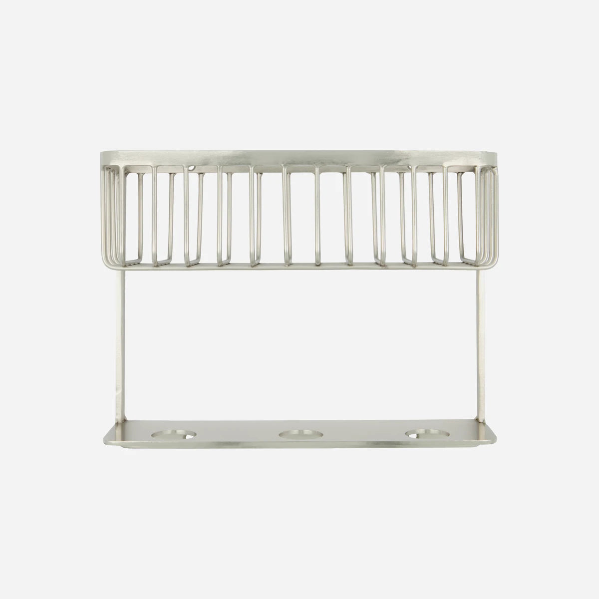 Organisieren Sie Ihr Badezimmer und schaffen Sie Platz für Ihre Pflegeprodukte mit Bath, einem Metallregal von House Doctor. Es besteht aus Edelstahl und wurde mit einem silbernen Finish versehen, um einen eleganten Look zu erzielen, der nie aus der Mode kommt. Das Design nutzt Ihren Platz optimal aus, mit einem Korb und einem Kleiderbügel mit Platz für 3 Flaschen. Eine ideale Möglichkeit, alles, was Sie in der Dusche brauchen, aufzubewahren, von Shampoo und Spülung bis hin zu Peelings und Accessoires. Eine andere Möglichkeit besteht darin, es an der Wand neben Ihrem Waschbecken aufzuhängen, um einfachen Zugriff auf alle Ihre Hautpflegeprodukte zu haben. Wo auch immer Sie es platzieren, das Badregal aktualisiert Ihr Badezimmer sofort und sorgt für Ordnung.