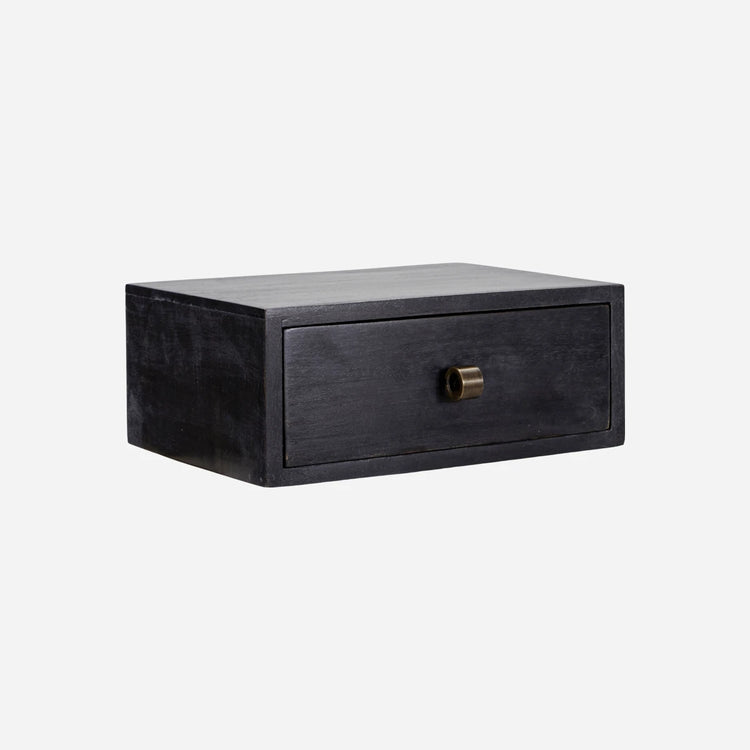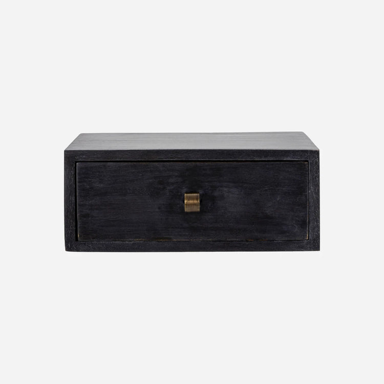 Einfache, funktionale und vielseitige Möbel sind ein Muss für jeden Raum. Mit dem schwarzen Beistelltisch Bedsi ist kein zusätzlicher Platzbedarf erforderlich. Montieren Sie es einfach an der Wand und verleihen Sie Ihrem Zimmer den letzten Schliff. Der Beistelltisch aus Mangoholz verfügt über eine Schublade für Ihre Alltagsgegenstände und bietet auf der Oberseite Platz für einen Kerzenhalter und andere Dekorationen. Nutzen Sie das vielseitige Möbelstück als schwebenden Nachttisch in Ihrem Schlafzimmer, als Beistelltisch neben Ihrem Sessel oder als Aufbewahrungsort für Ihre Schlüssel und andere Gegenstände im Flur.